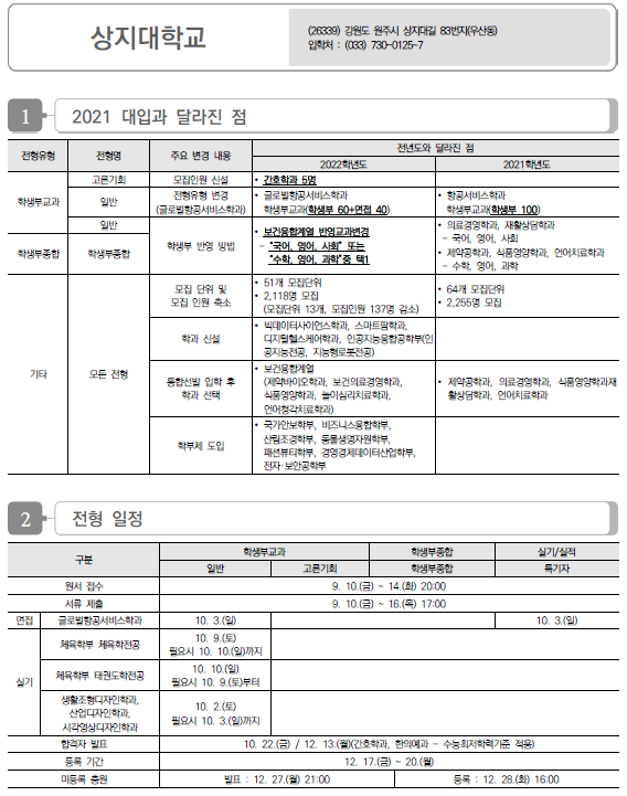 | 상명대학교(서울+천안캠퍼스) 2022학년도 수시전형 방법, 모집요강 및 전년도 수시 입시결과(수시등급) (0) | 2021.08.12 |
