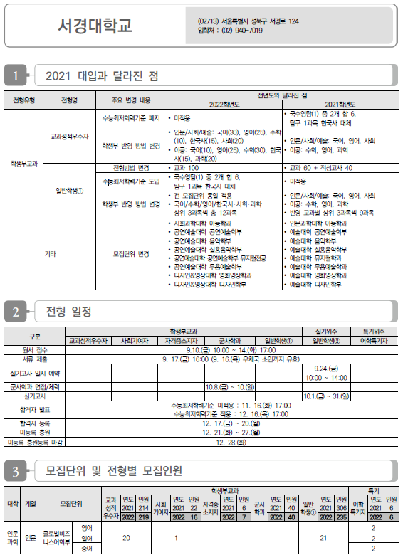 | 서강대학교 2022학년도 수시전형 방법, 모집요강 및 전년도 수시 입시결과(수시등급) (0) | 2021.08.12 |
