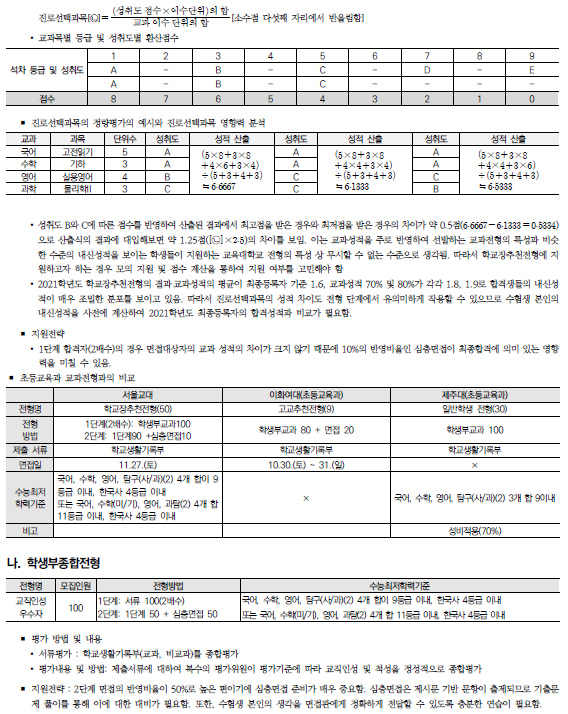 | 서울시립대학교 2022학년도 수시전형 방법, 모집요강 및 전년도 수시 입시결과(수시등급) (0) | 2021.08.12 |