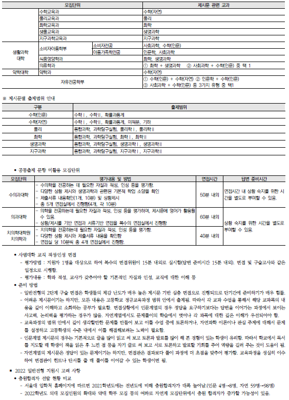 | 서울교육대학교(서울교대) 2022학년도 수시전형 방법, 모집요강 및 전년도 수시 입시결과(수시등급) (0) | 2021.08.12 |
