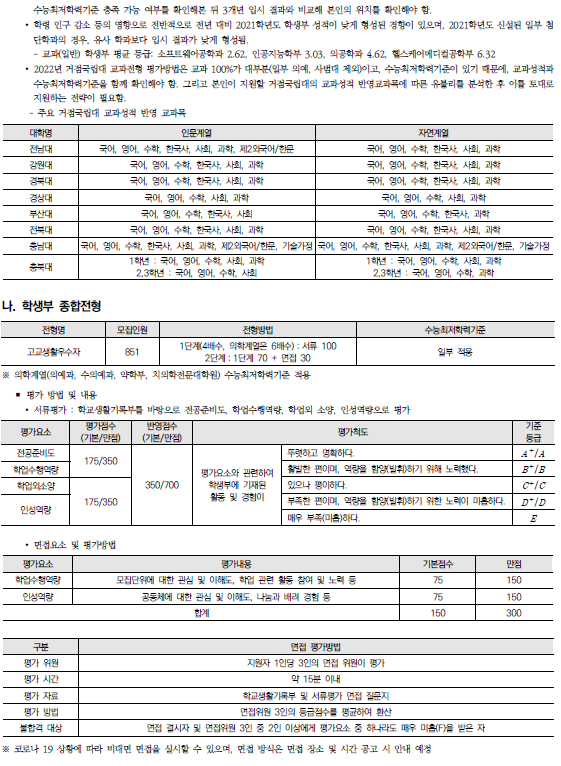 | 중부대학교 2022학년도 수시전형 방법, 모집요강 및 전년도 수시 입시결과(수시등급) (0) | 2021.08.13 |
