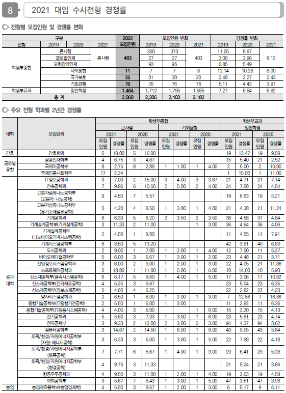 | 전남대학교 2022학년도 수시전형 방법, 모집요강 및 전년도 수시 입시결과(수시등급) (0) | 2021.08.13 |