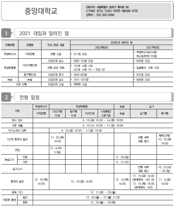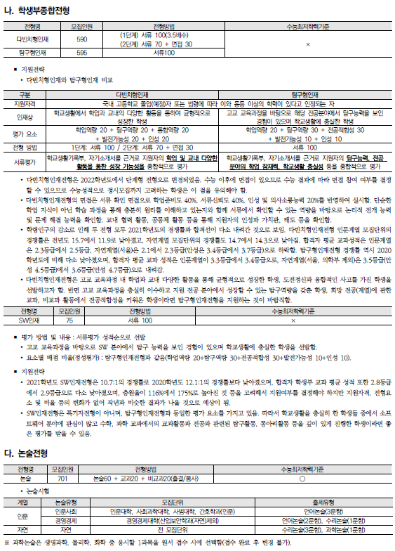 | 중부대학교 2022학년도 수시전형 방법, 모집요강 및 전년도 수시 입시결과(수시등급) (0) | 2021.08.13 |