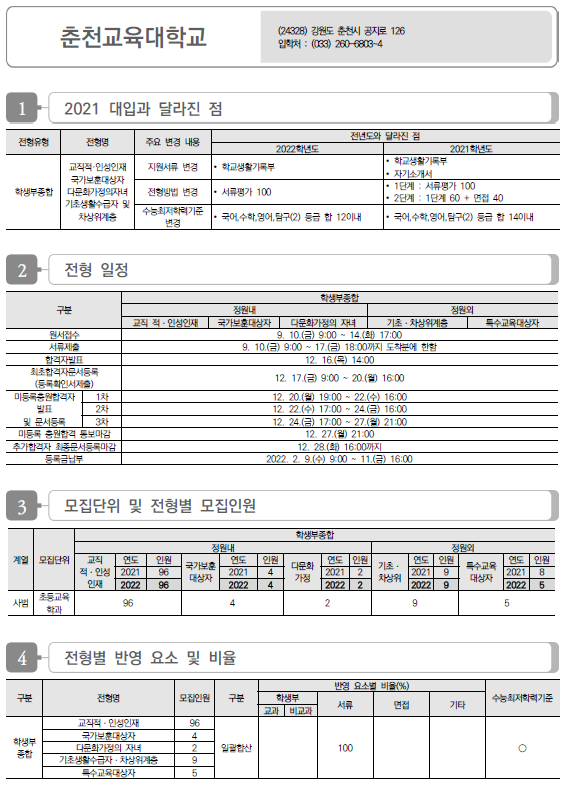 | 충북대학교 2022학년도 수시전형 방법, 모집요강 및 전년도 수시 입시결과(수시등급) (0) | 2021.08.17 |