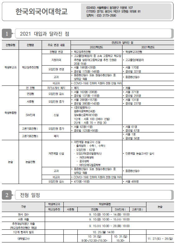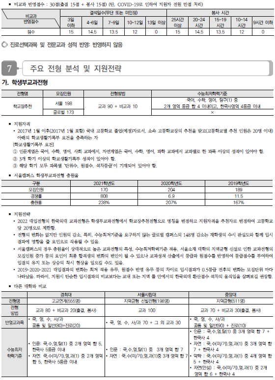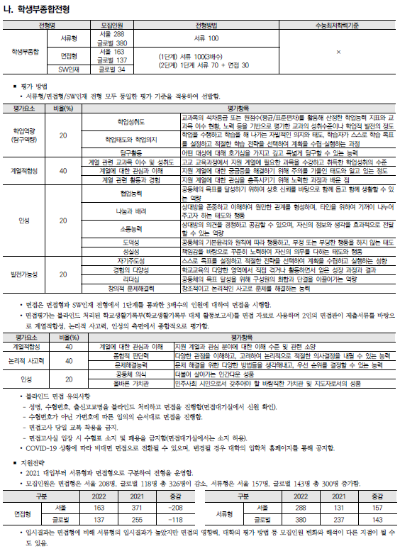 | 한국교통대학교 2022학년도 수시전형 방법, 모집요강 및 전년도 수시 입시결과(수시등급) (0) | 2021.08.17 |