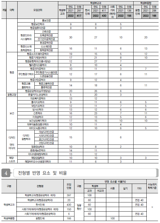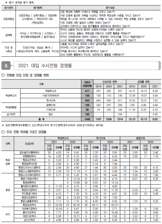 | 한국항공대학교(항공대) 2022학년도 수시전형 방법, 모집요강 및 전년도 수시 입시결과(수시등급) (0) | 2021.08.17 |