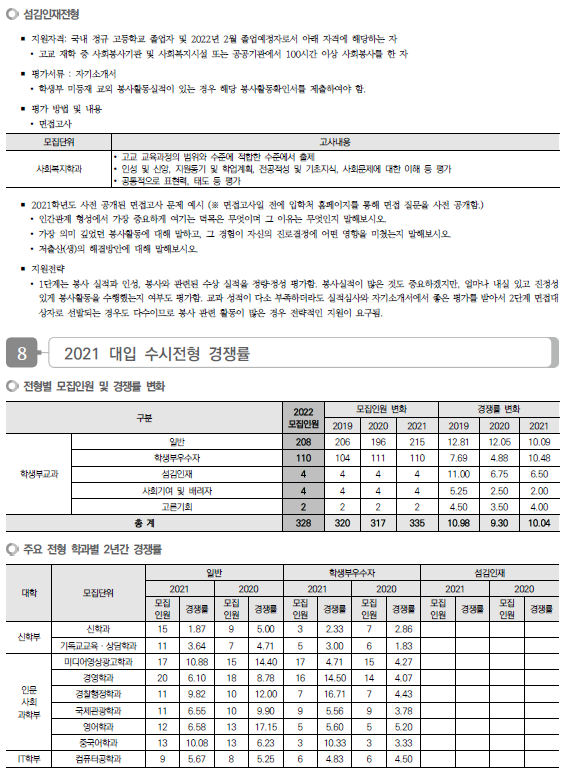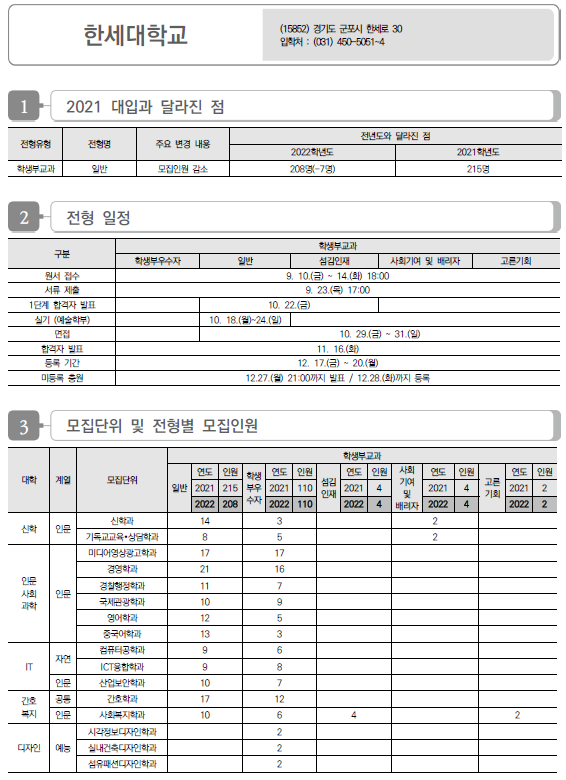 | 한성대학교 2022학년도 수시전형 방법, 모집요강 및 전년도 수시 입시결과(수시등급) (0) | 2021.08.17 |