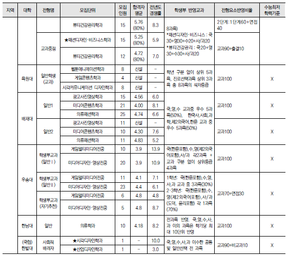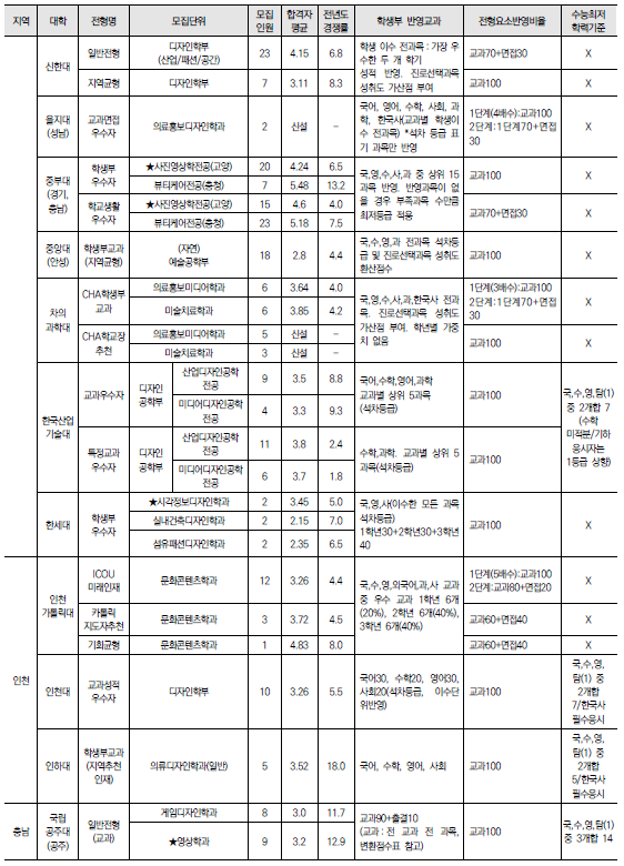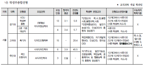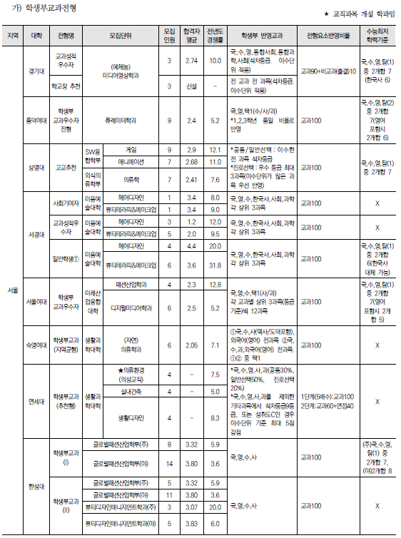 | 2022학년도 수시 고른기회전형 운영 대학 - 기초생활수급자, 차상위, 한부모, 장애인, 유공자, 다자녀, 사회기여자/사회배려자(공무원) 등 (0) | 2021.08.24 |
