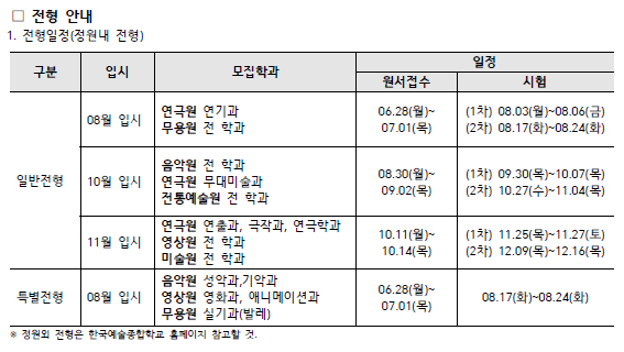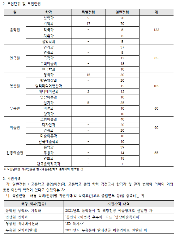 | 미술대학(디자인, 미디어, 영상, 애니, 의류, 패션, 뷰티 등) 수시모집 요강 - 한국예술종합학교(한예종), 실기위주전형, 학생부교과전형, 학생부종합전형, 실적위주전형(특기자전형) (0) | 2021.08.24 |