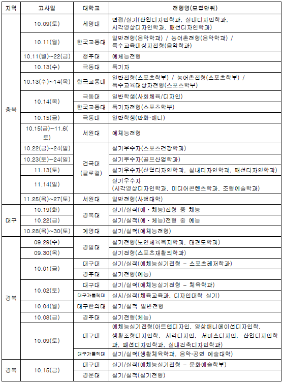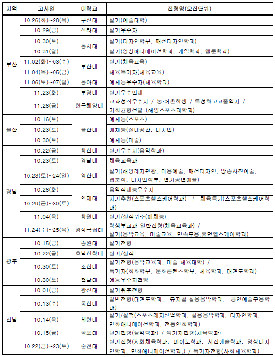 | 2022학년도 장애인,특수교육대상자 수시 특별전형 - 학생부종합전형, 학생부교과전형 (0) | 2021.09.03 |