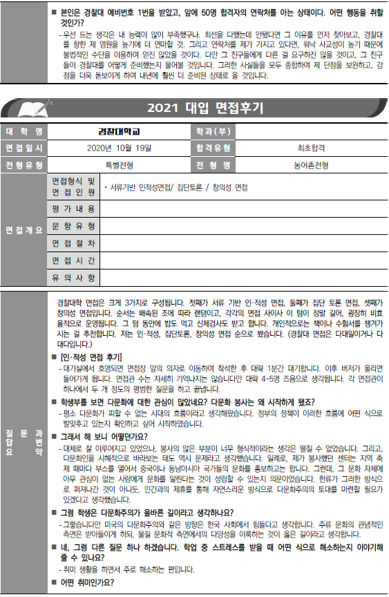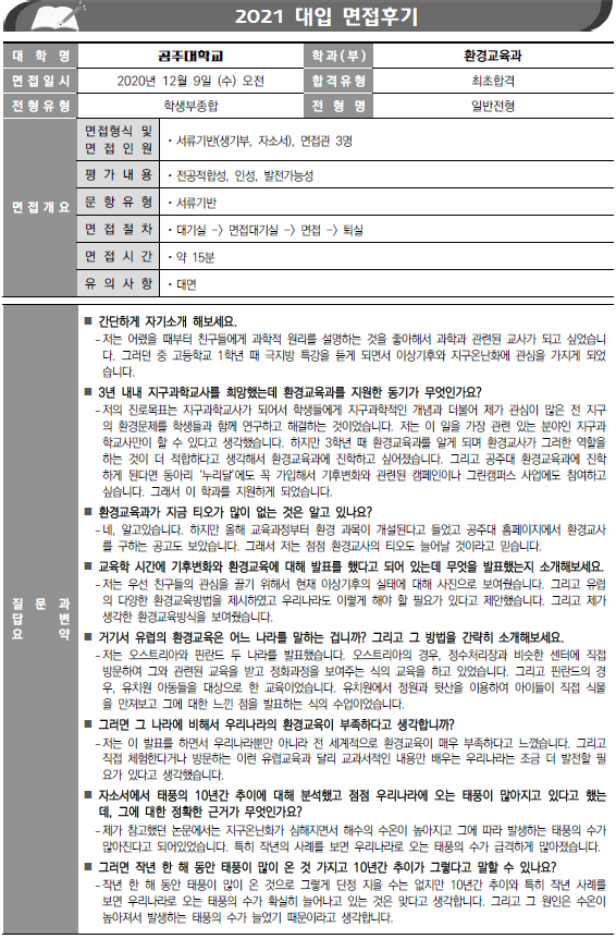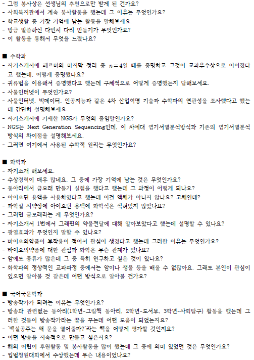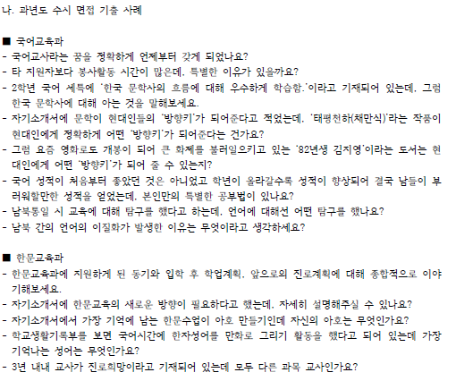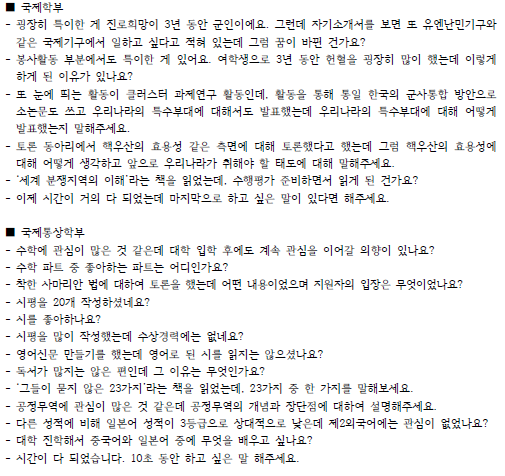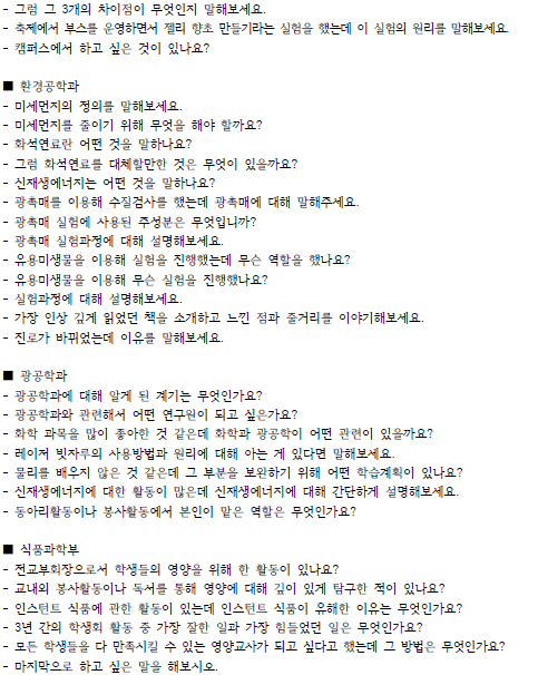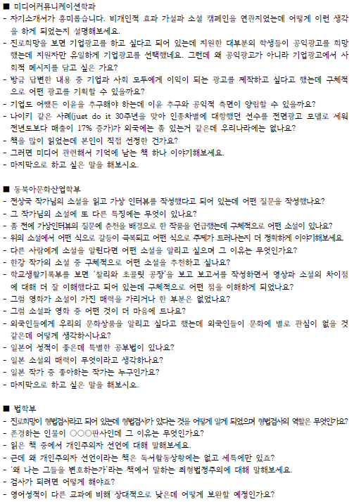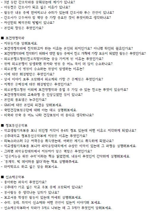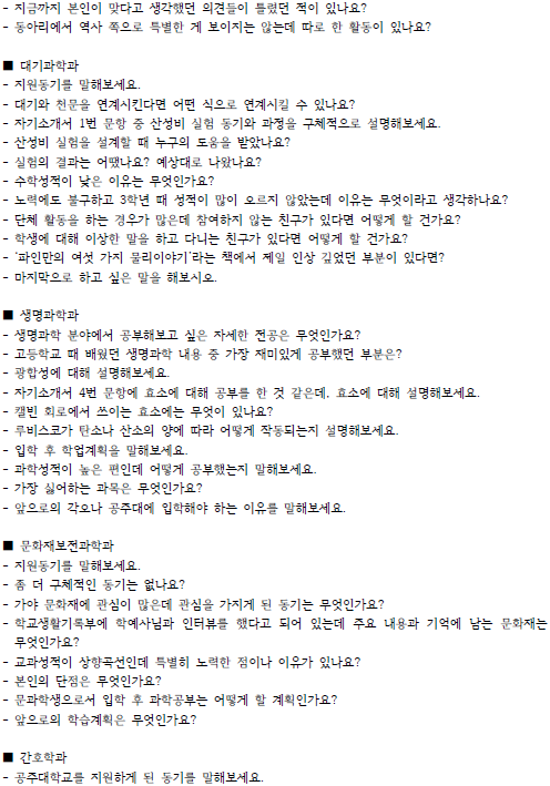 ※ 면접 기출문항은 각 대학 입학처 홈페이지 또는 각 시도교육청 면접자료 참조