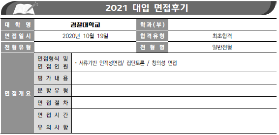 | 2022학년도 대입 수시 면접- ② 학과별 면접 유형 (0) | 2021.09.17 |