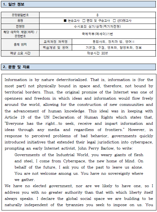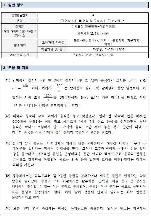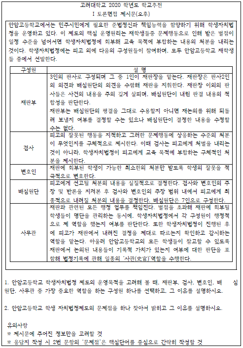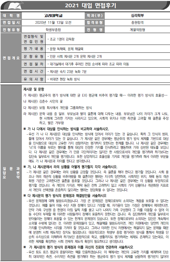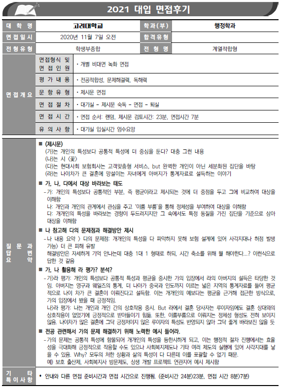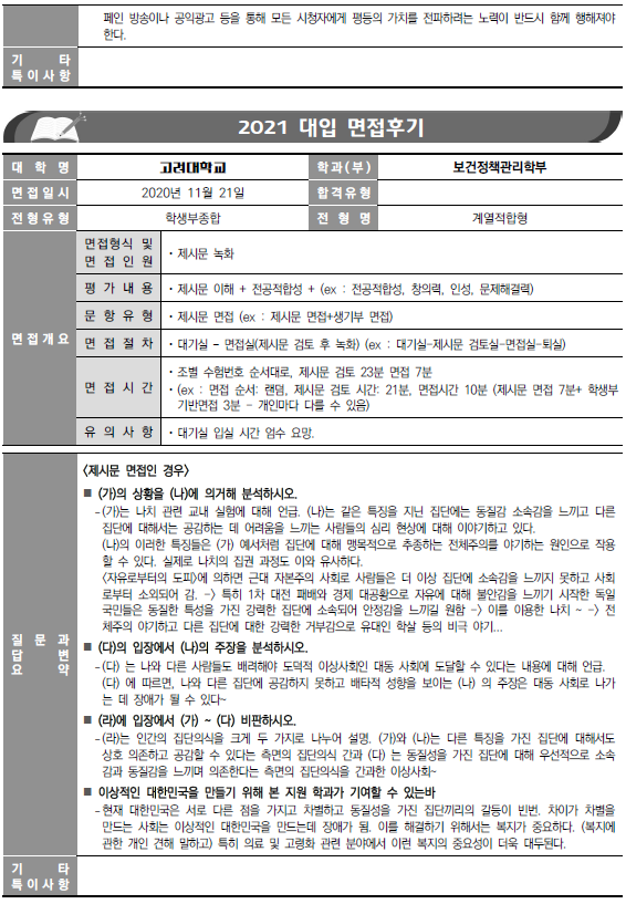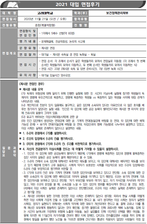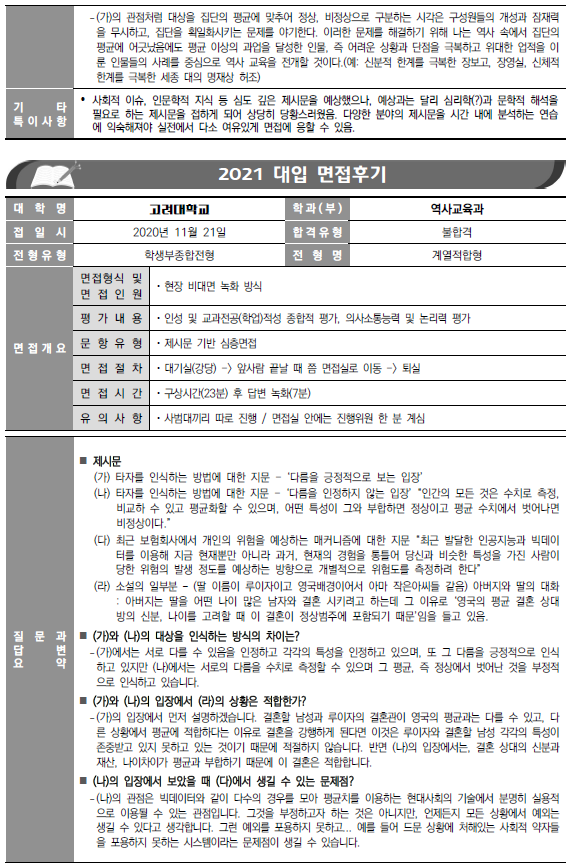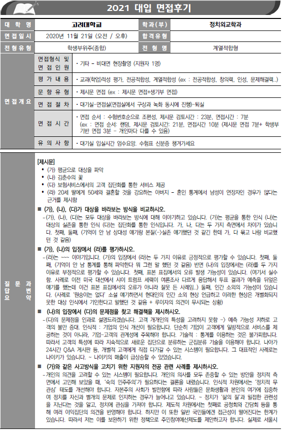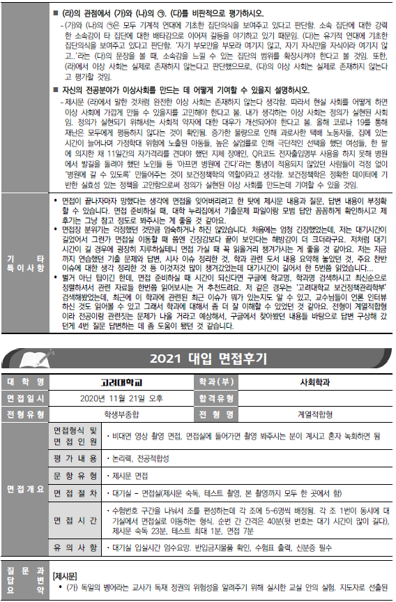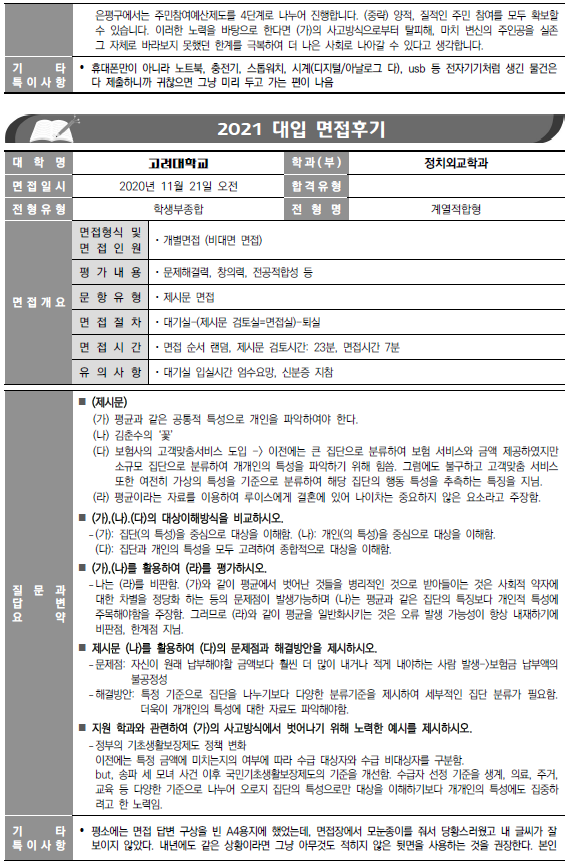 | 2022학년도 수시 면접 대비 전년도 기출문제 -③ 경찰대, 공주대, 광운대 (0) | 2021.09.28 |