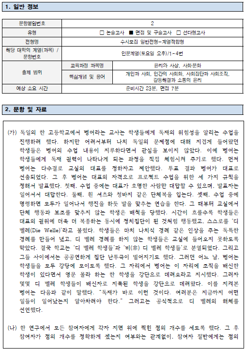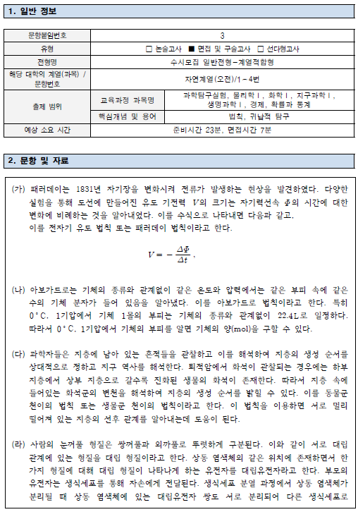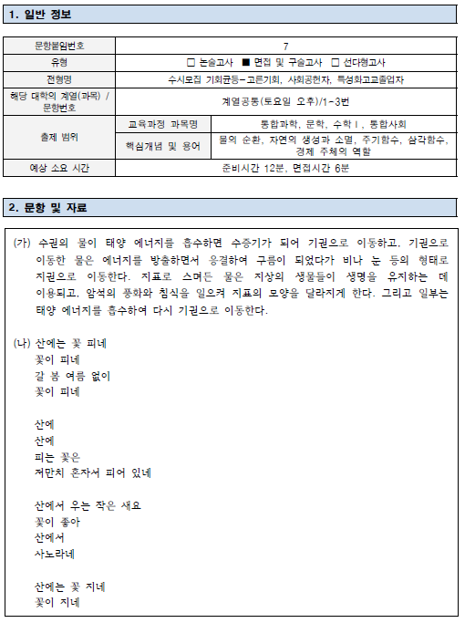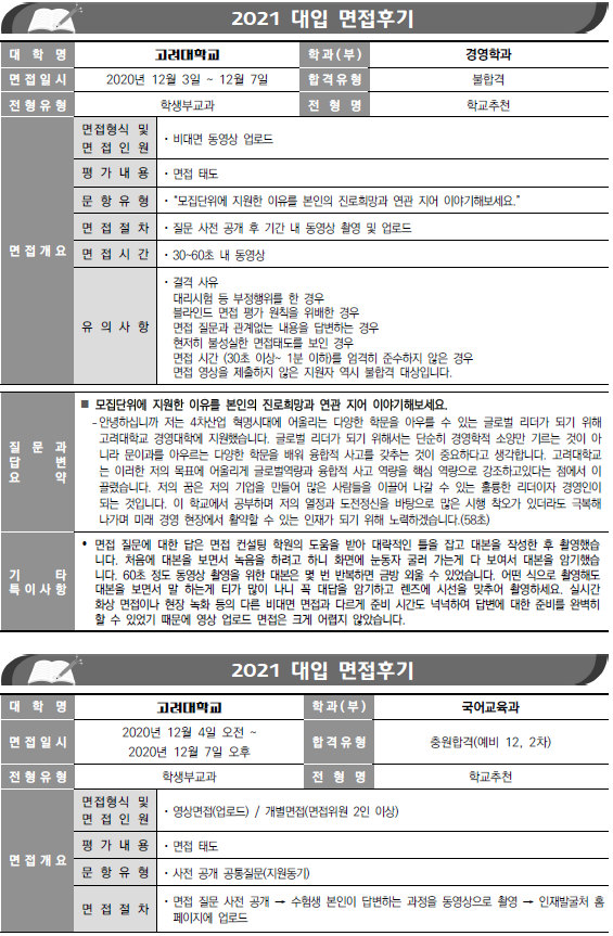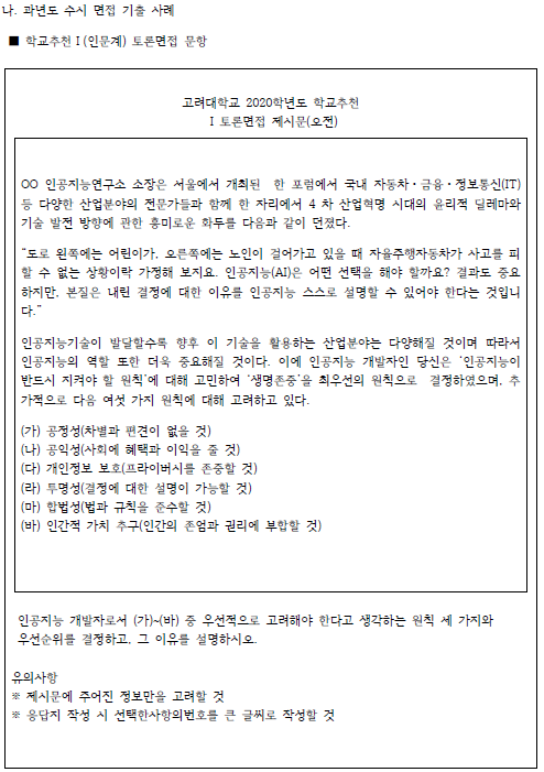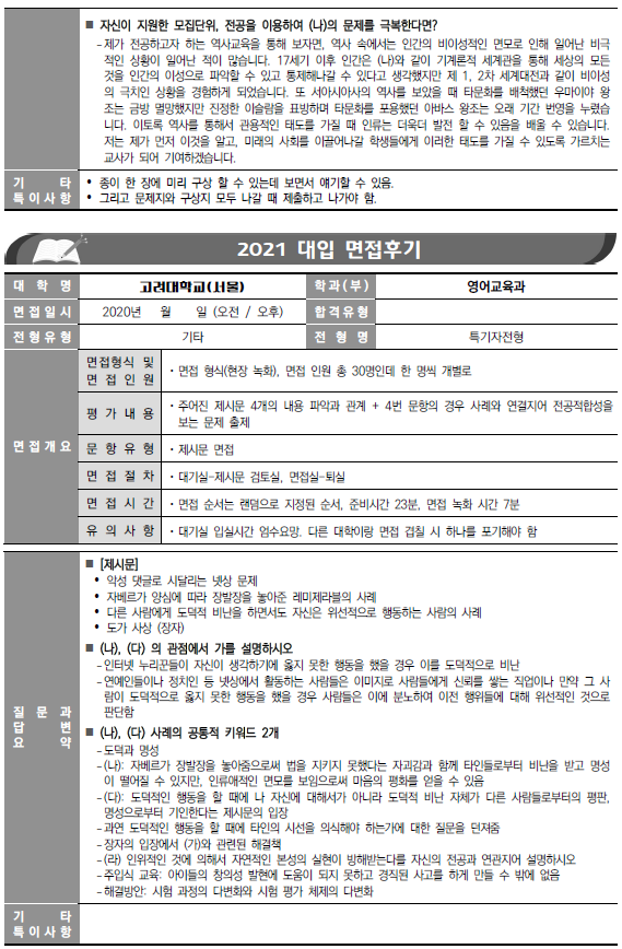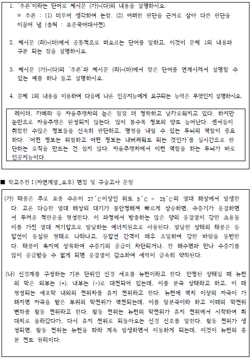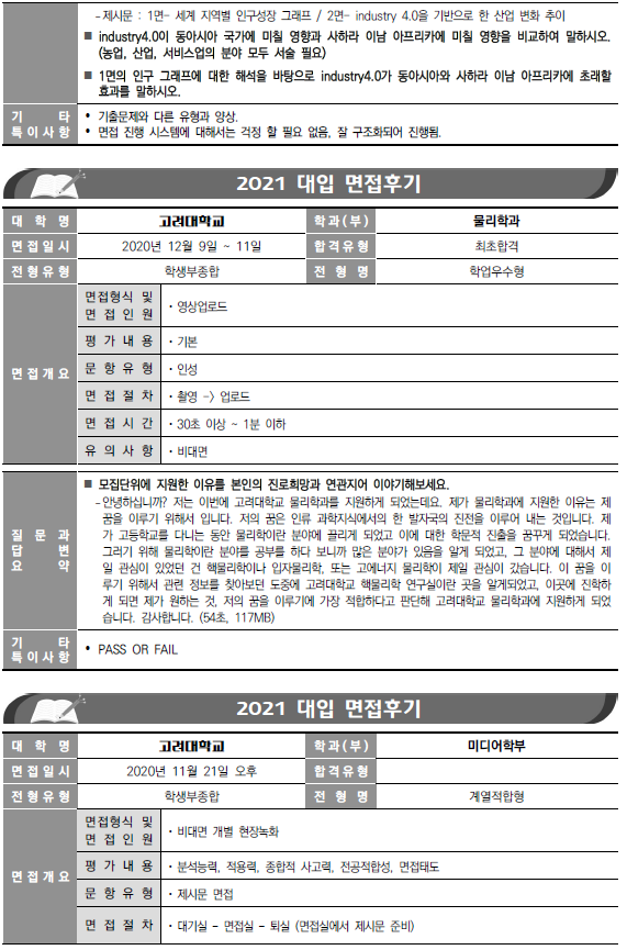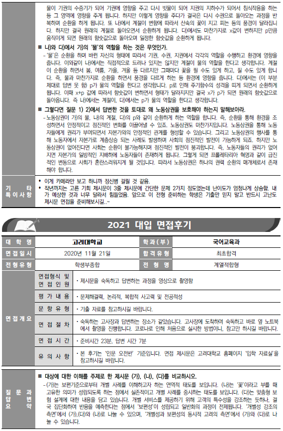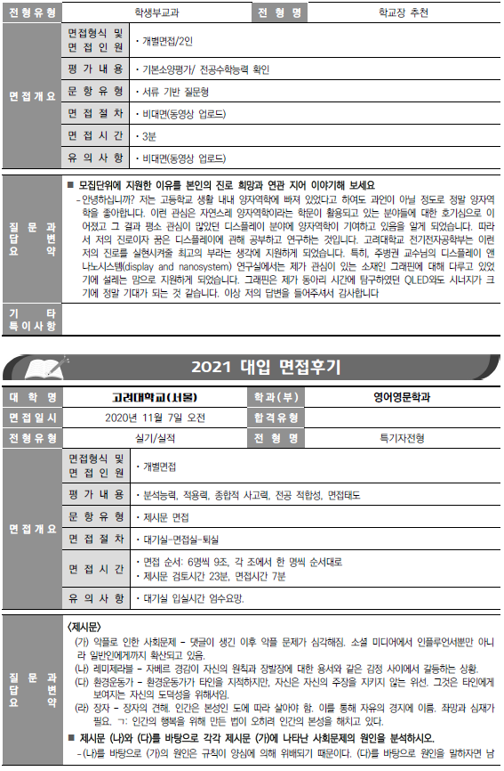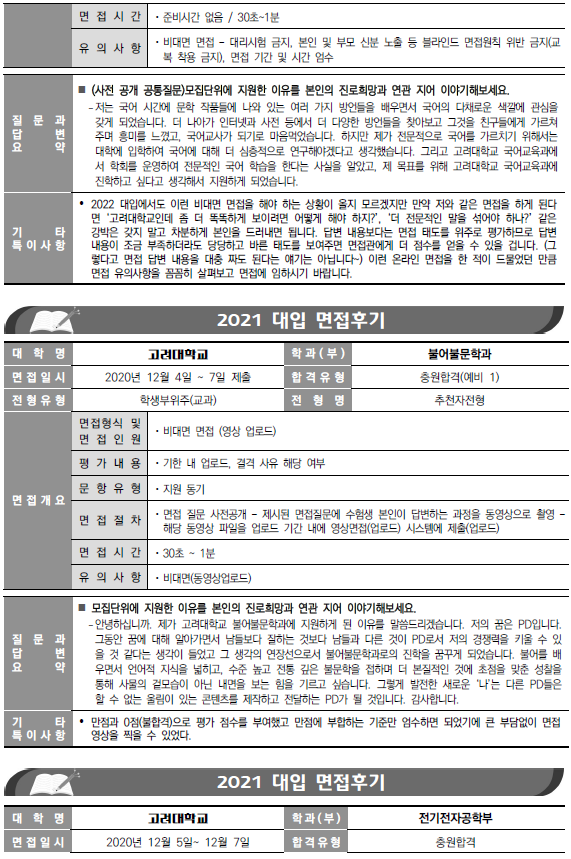 ※ 면접 기출문항은 각 대학 입학처 홈페이지 또는 각 시도교육청 면접자료 참조