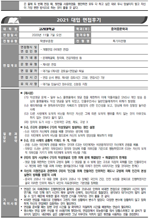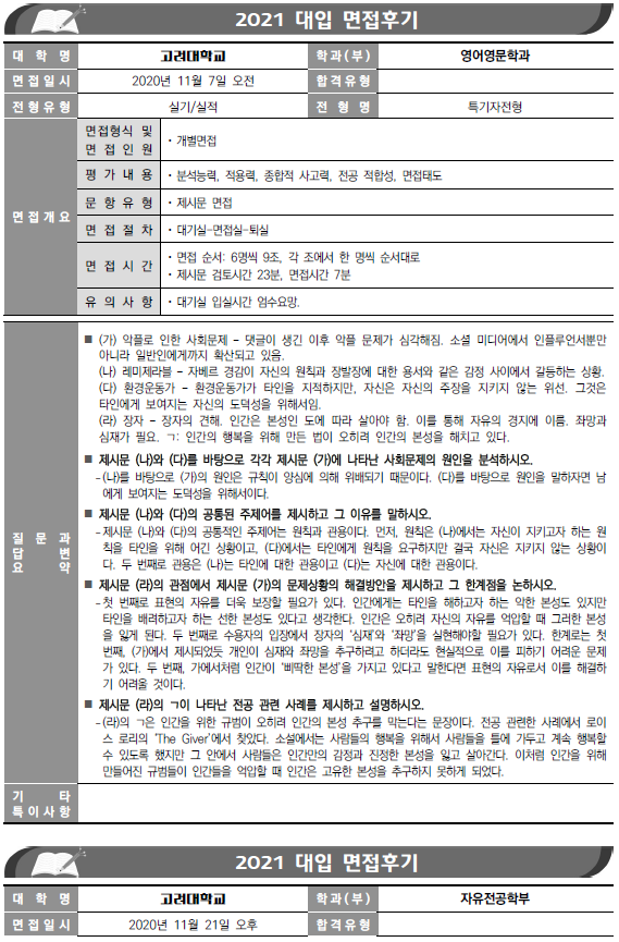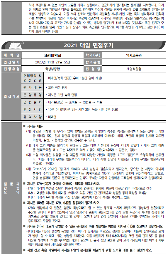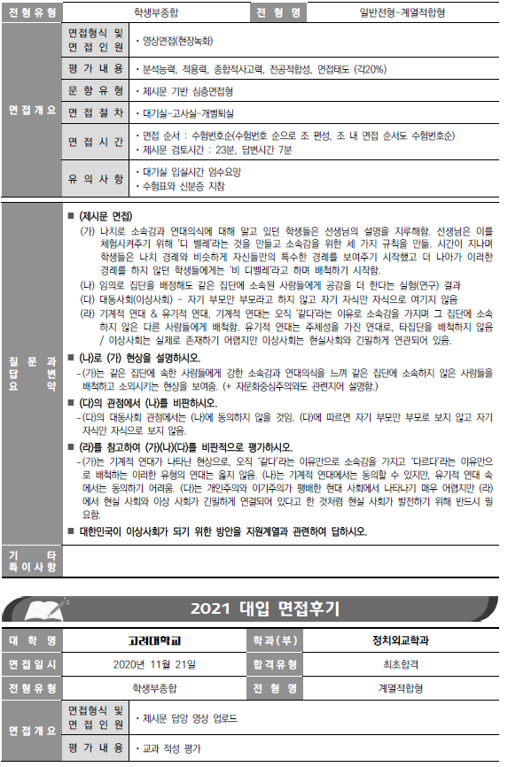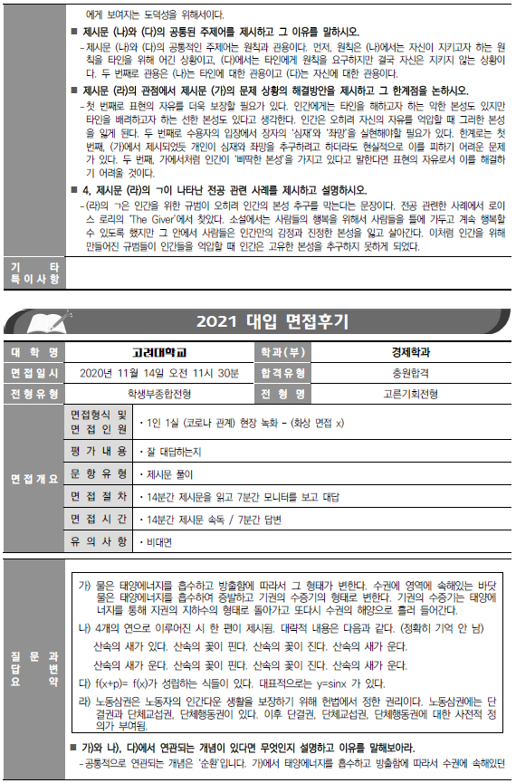 | 2022학년도 수시 면접 대비 전년도 기출문제 -③ 국민대, 경희대 (0) | 2021.09.28 |