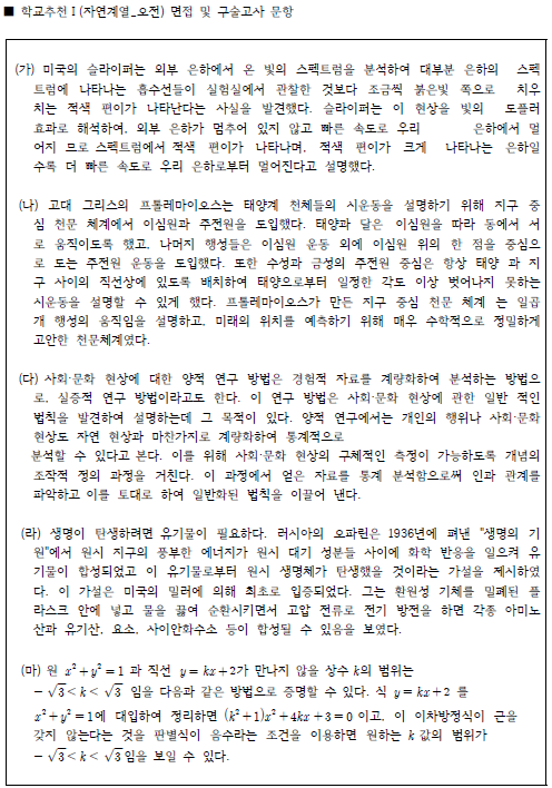 | 2022학년도 수시 면접 대비 전년도 기출문제 -③ 사관학교(육사,해사,공사, 국간사), 특수목적대(DGIST, GIST, UNIST, POSTEC, KAIST) (0) | 2021.09.30 |