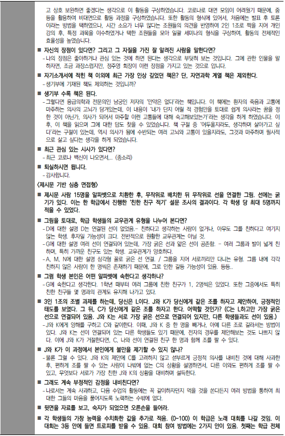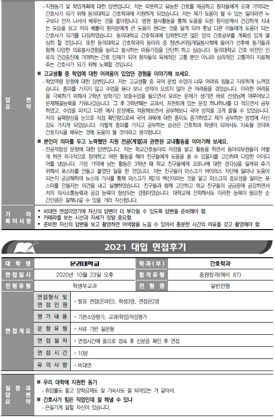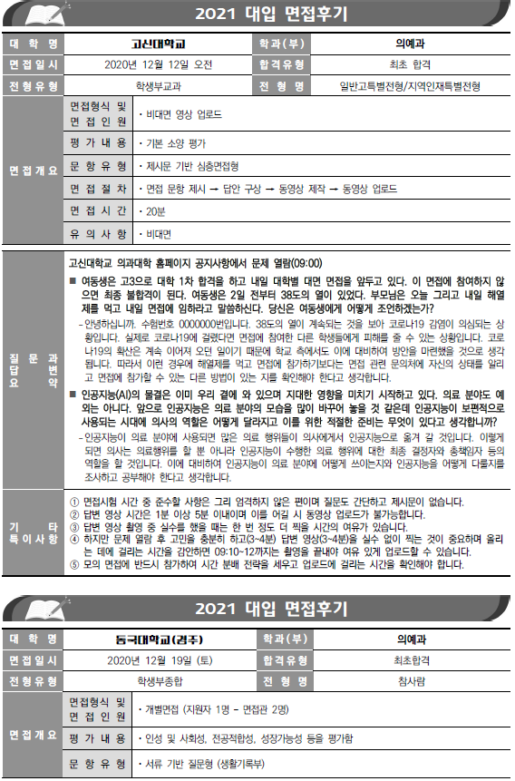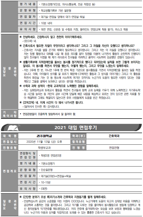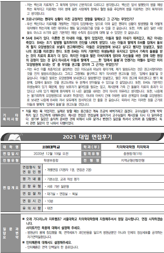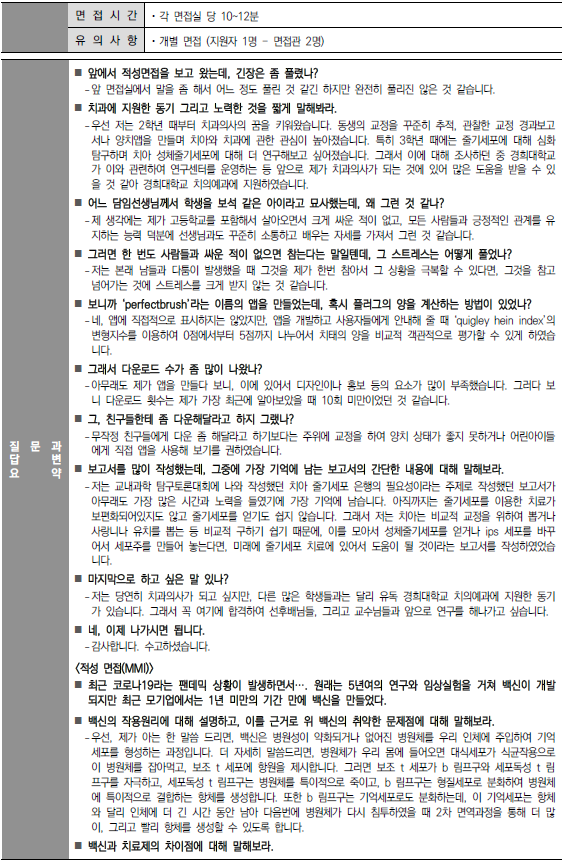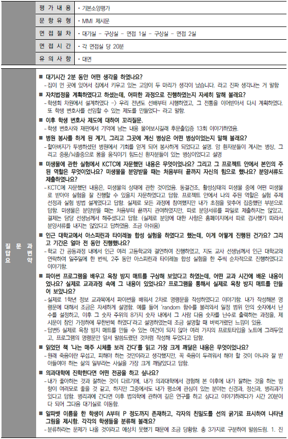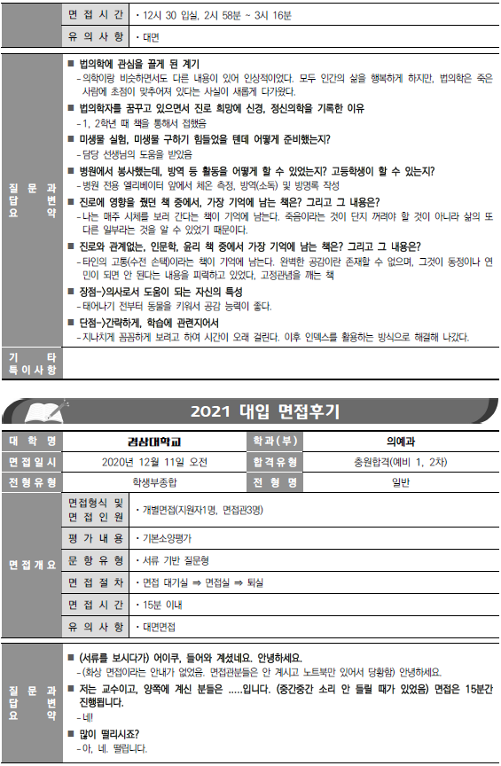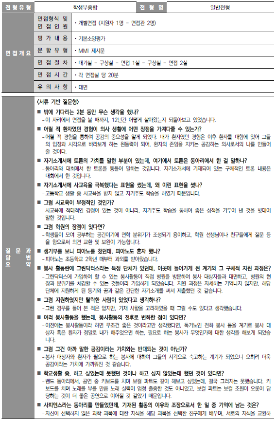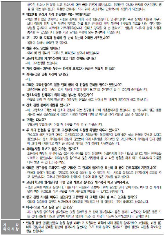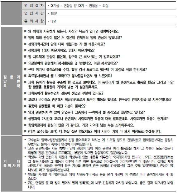 ※ 면접 기출문항은 각 대학 입학처 홈페이지 또는 각 시도교육청 면접자료 참조
