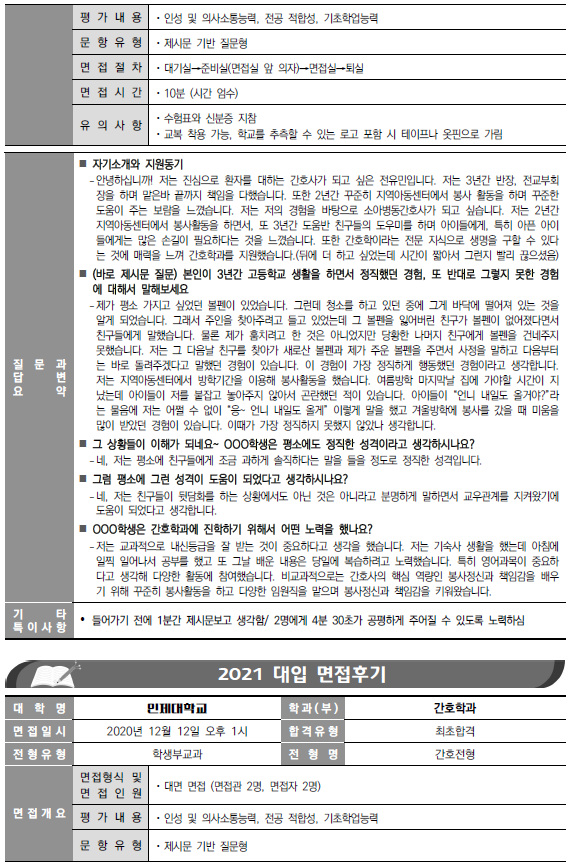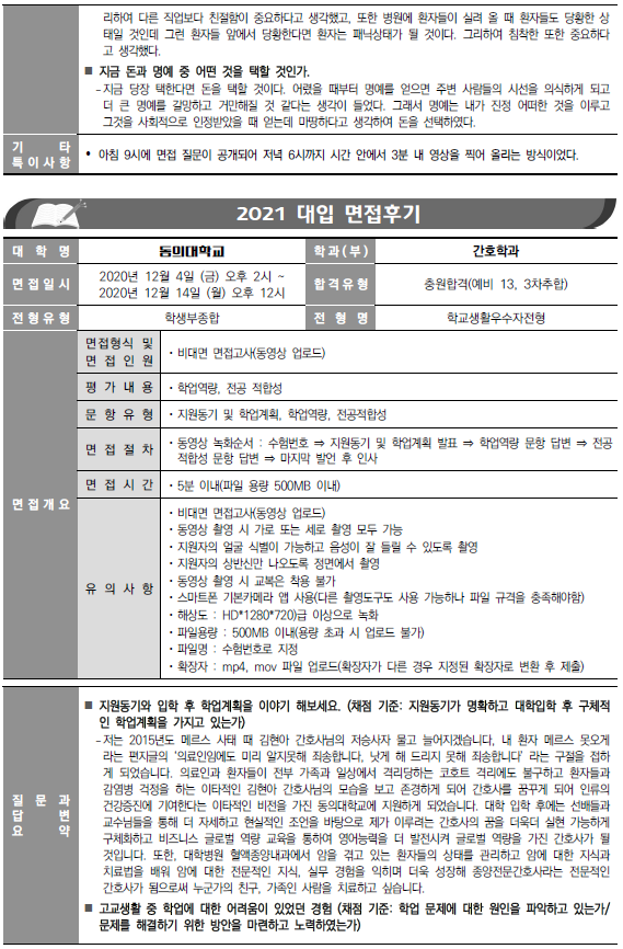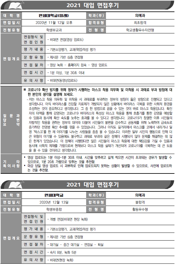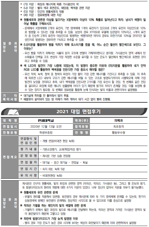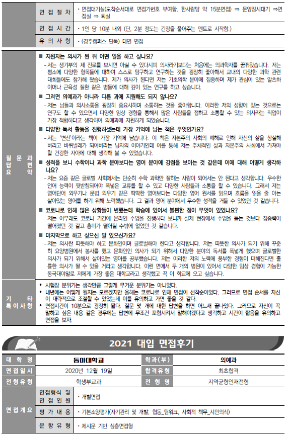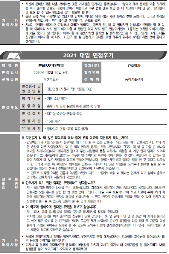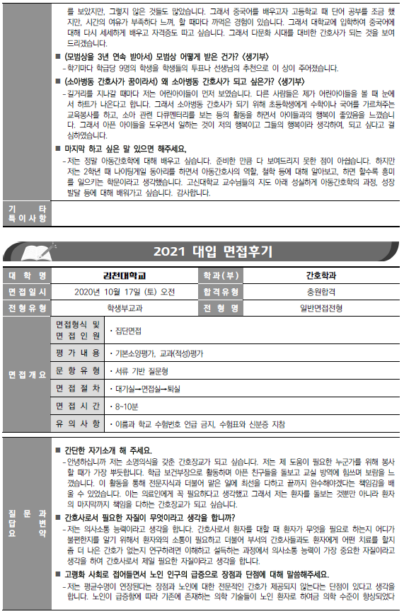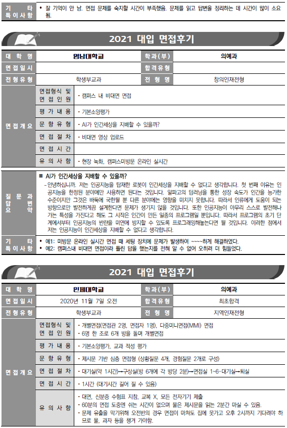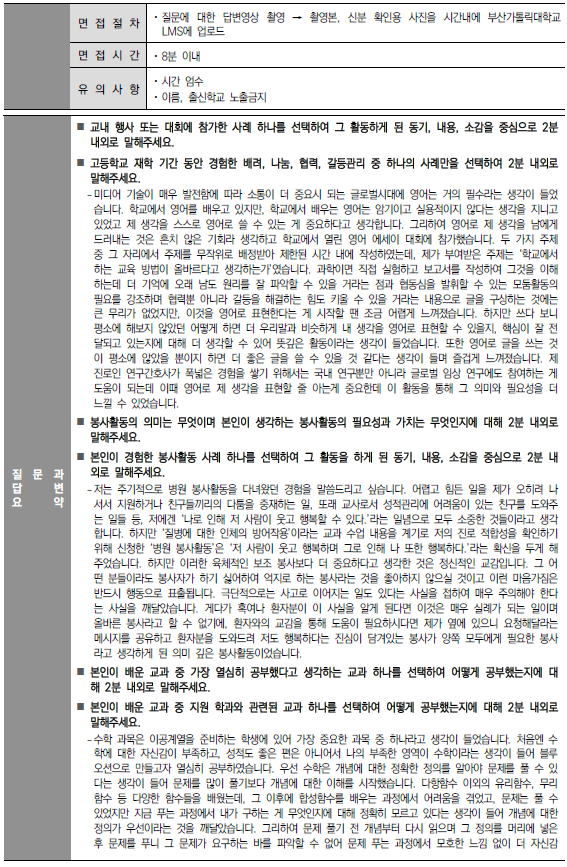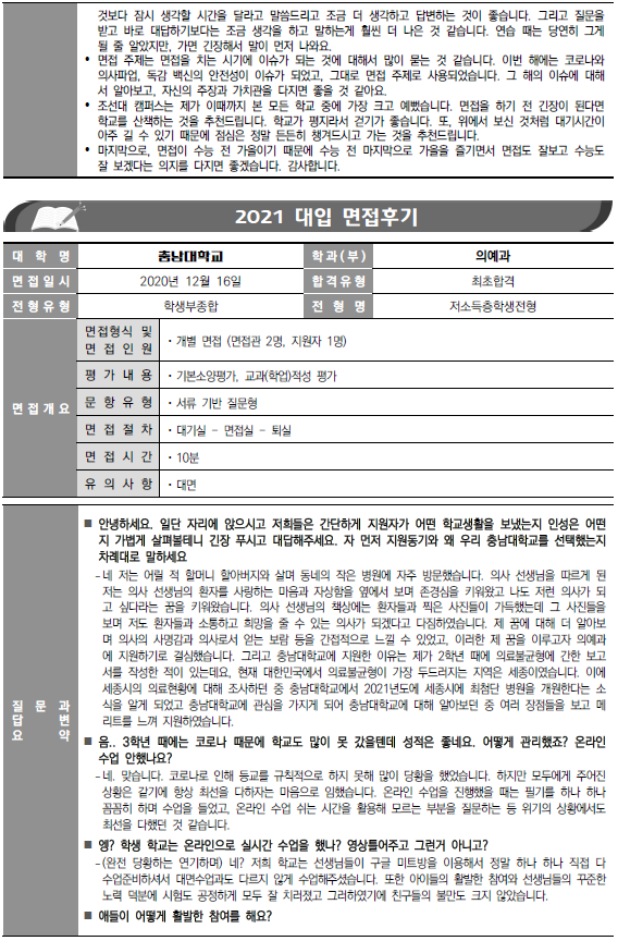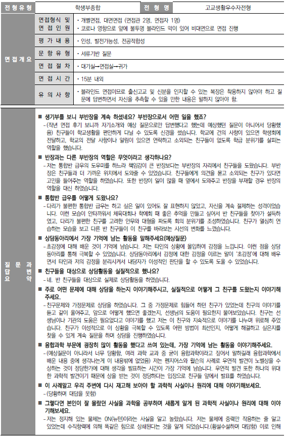 ※ 면접 기출문항은 각 대학 입학처 홈페이지 또는 각 시도교육청 면접자료 참조