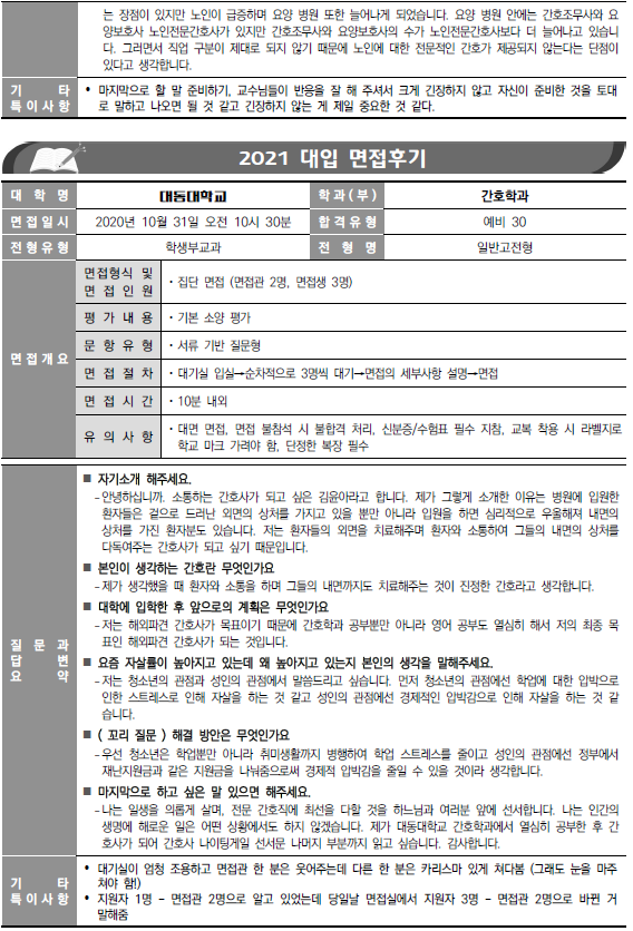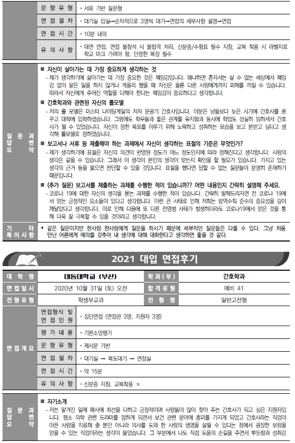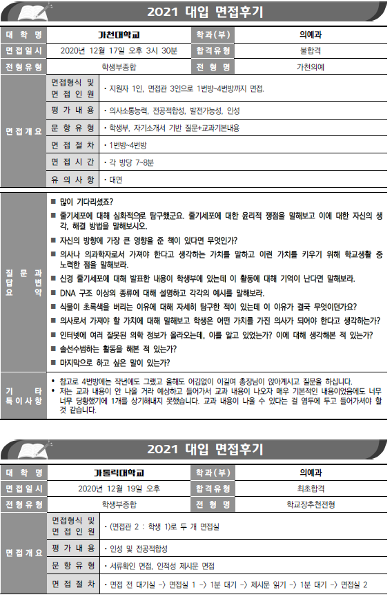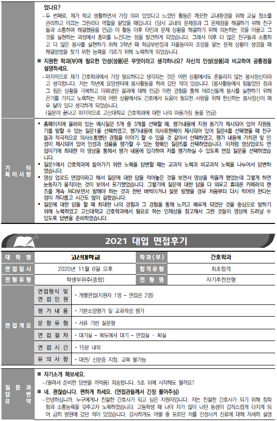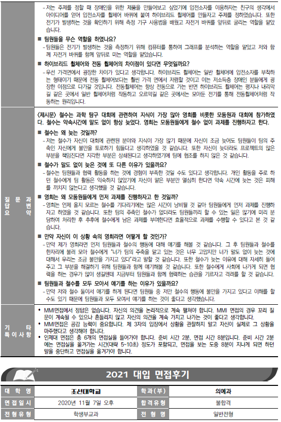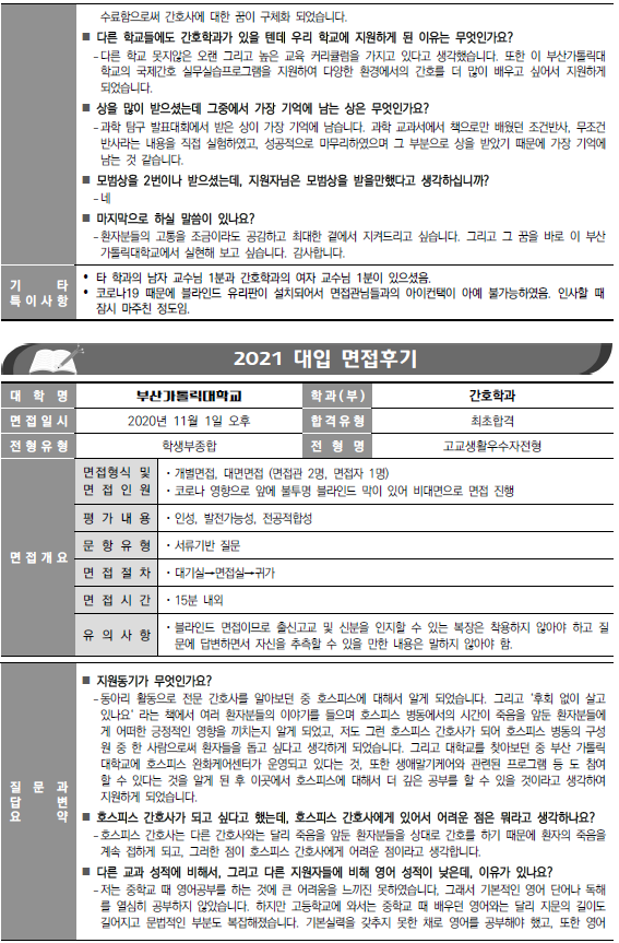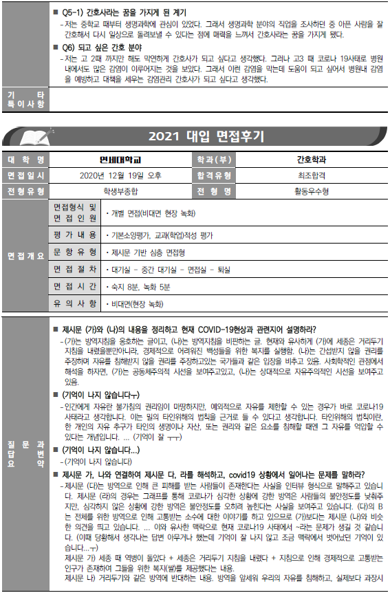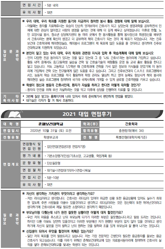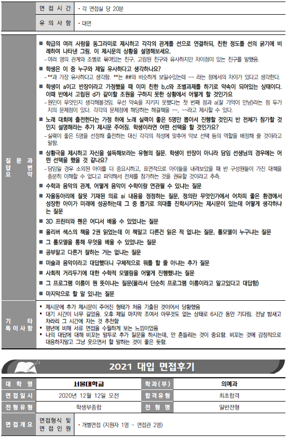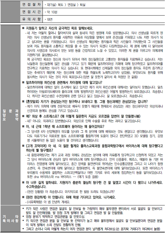 ※ 면접 기출문항은 각 대학 입학처 홈페이지 또는 각 시도교육청 면접자료 참조