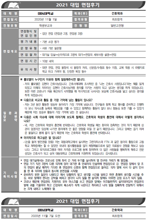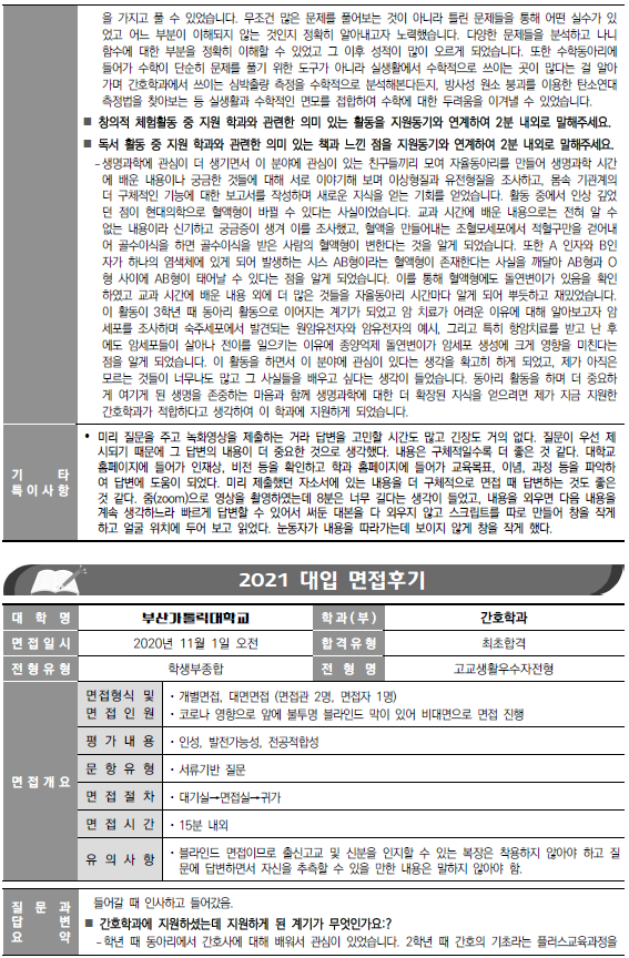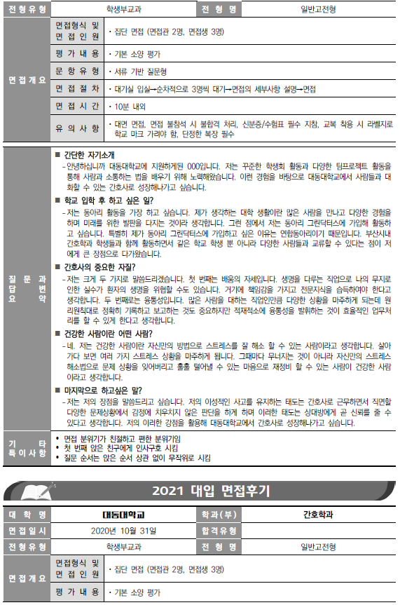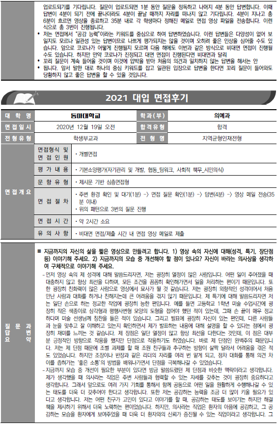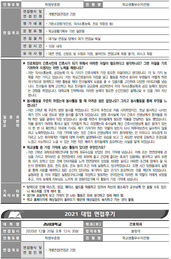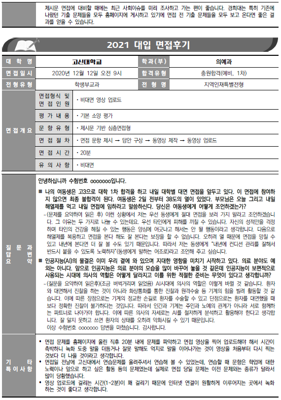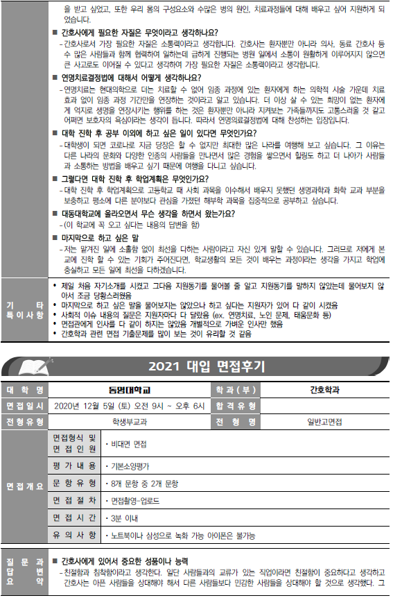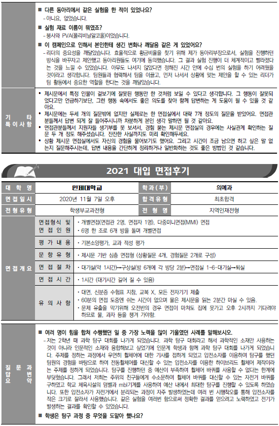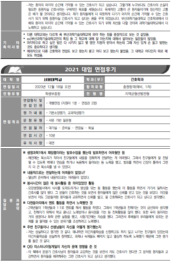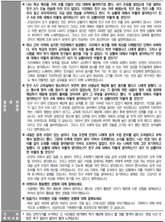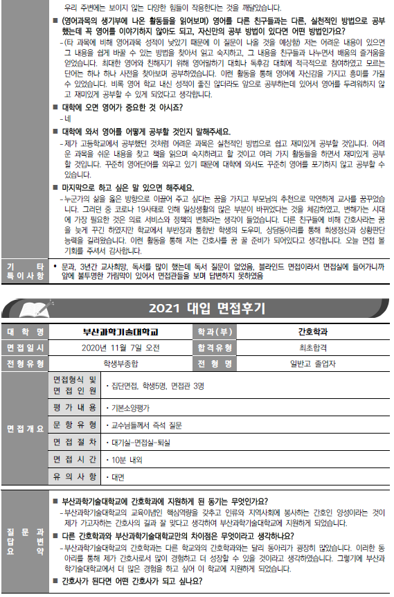 ※ 면접 기출문항은 각 대학 입학처 홈페이지 또는 각 시도교육청 면접자료 참조