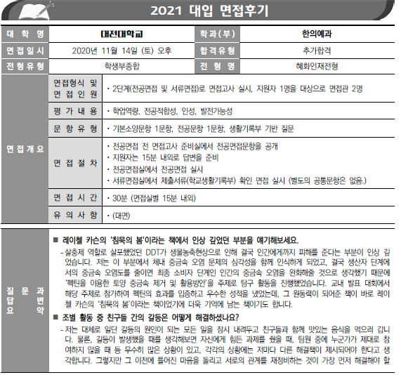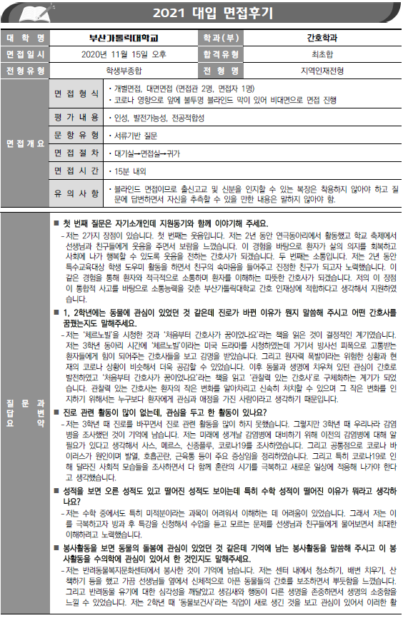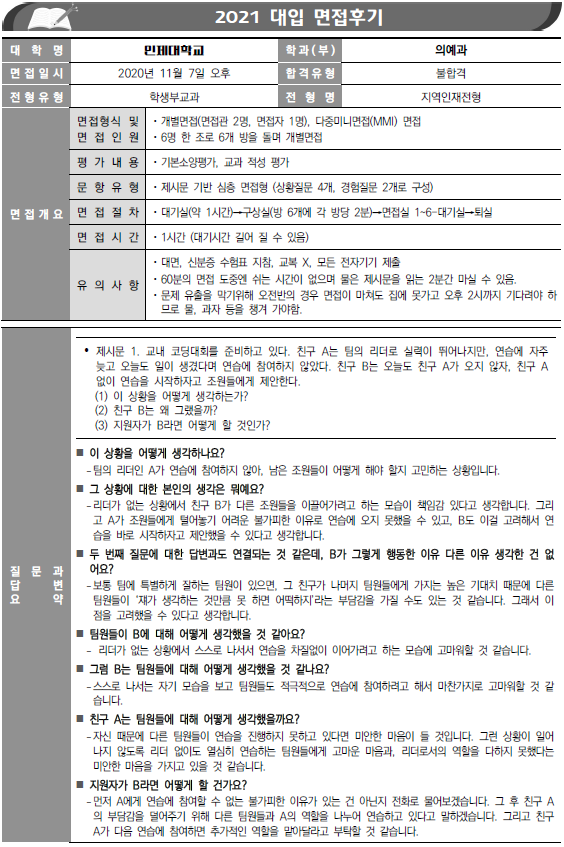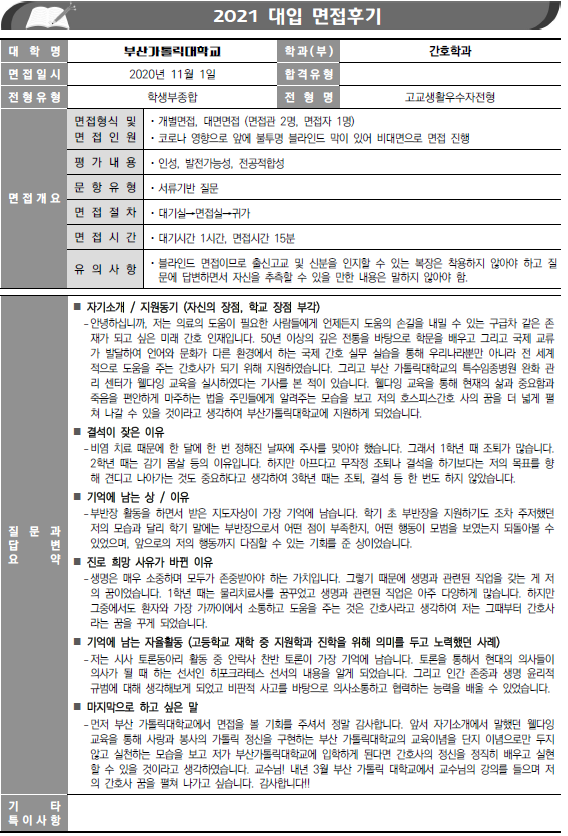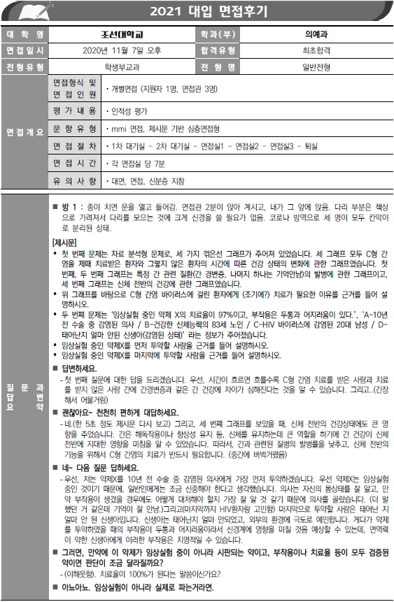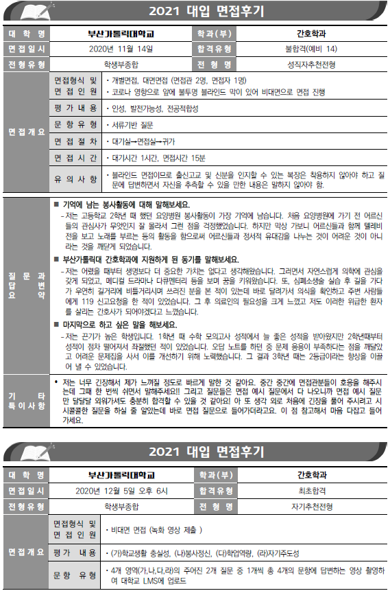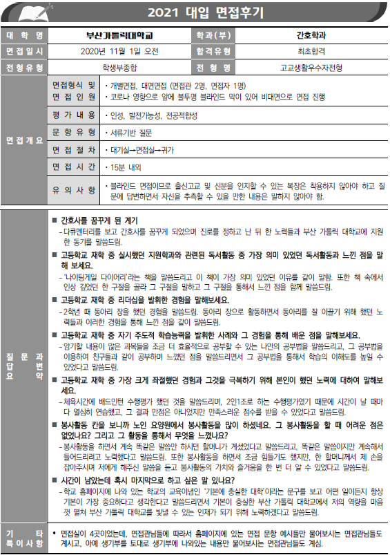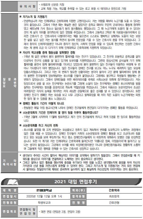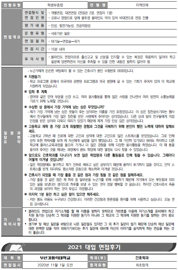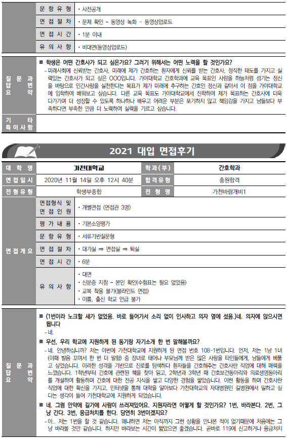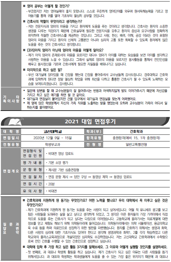 ※ 면접 기출문항은 각 대학 입학처 홈페이지 또는 각 시도교육청 면접자료 참조