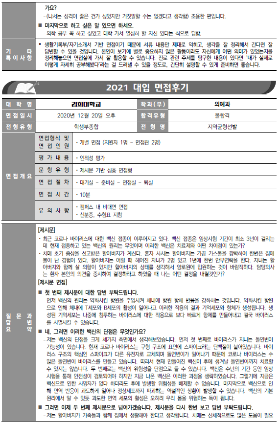 | 2022학년도 수시 면접 대비 전년도 기출문제 -③ 국민대, 경희대 (0) | 2021.09.28 |