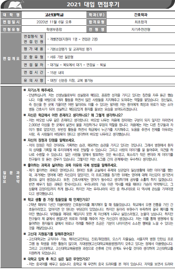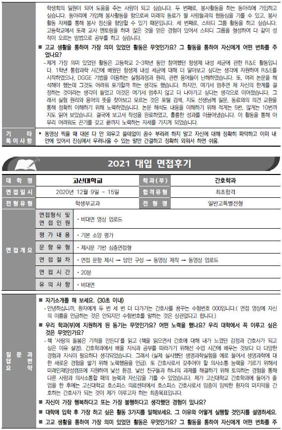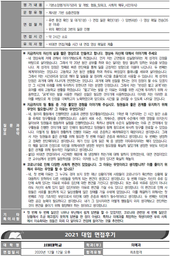 | 2022학년도 수시 면접 대비 전년도 기출문제 -③ 고려대, (0) | 2021.09.28 |