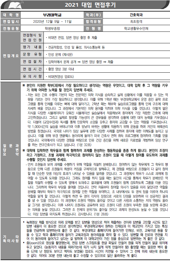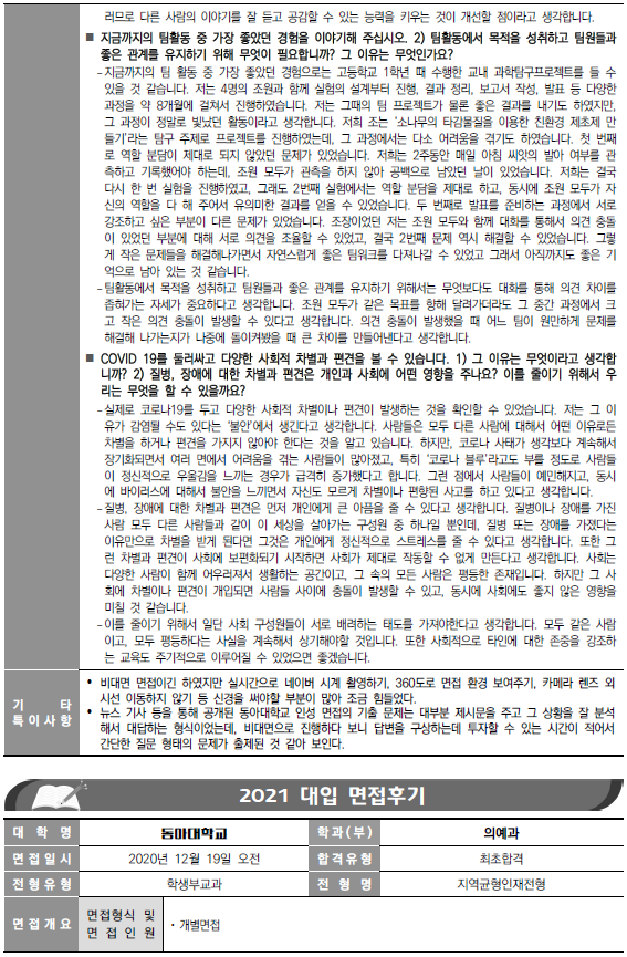 | 2022학년도 수시 면접 대비 전년도 기출문제 -③ 동국대, 금오공대, 대구한의대 (0) | 2021.09.30 |