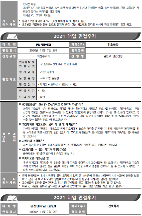 | 2022학년도 수시 면접 대비 전년도 기출문제 -③ 명지대, 상명대, 서울과학기술대 (0) | 2021.10.05 |