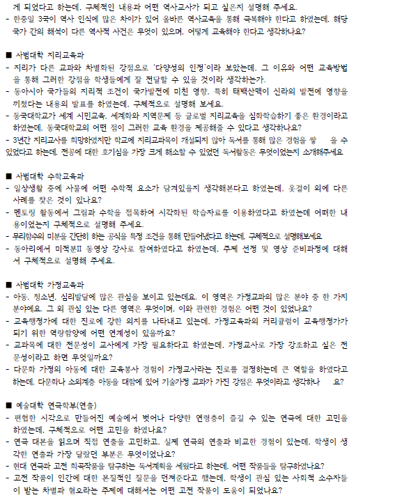 | 2022학년도 수시 면접 대비 전년도 기출문제 -③ 동아대, 삼육대 (0) | 2021.10.07 |