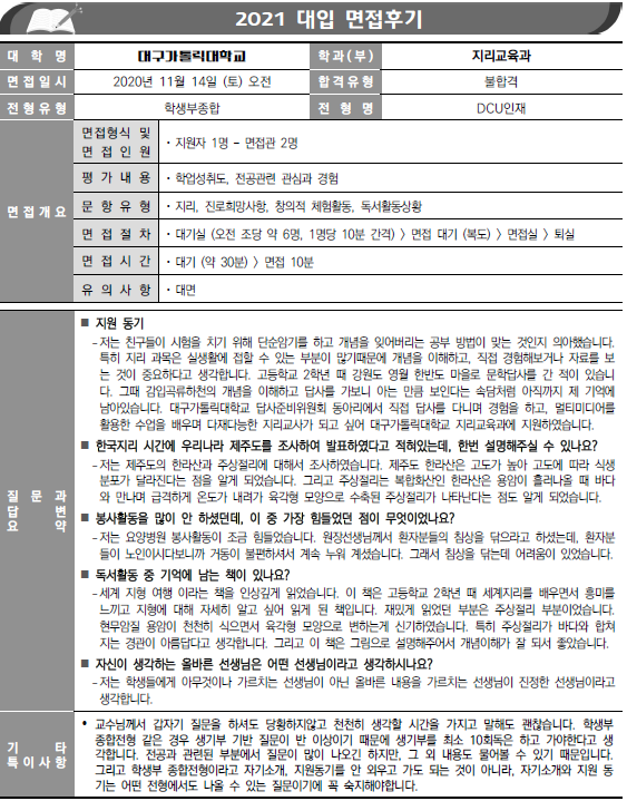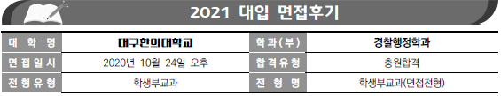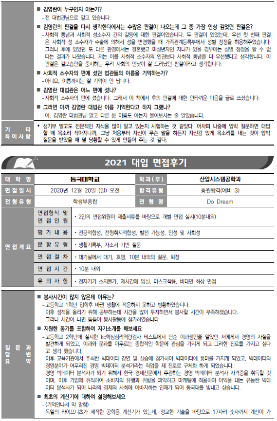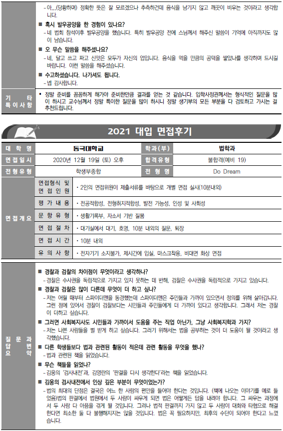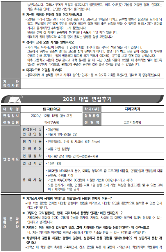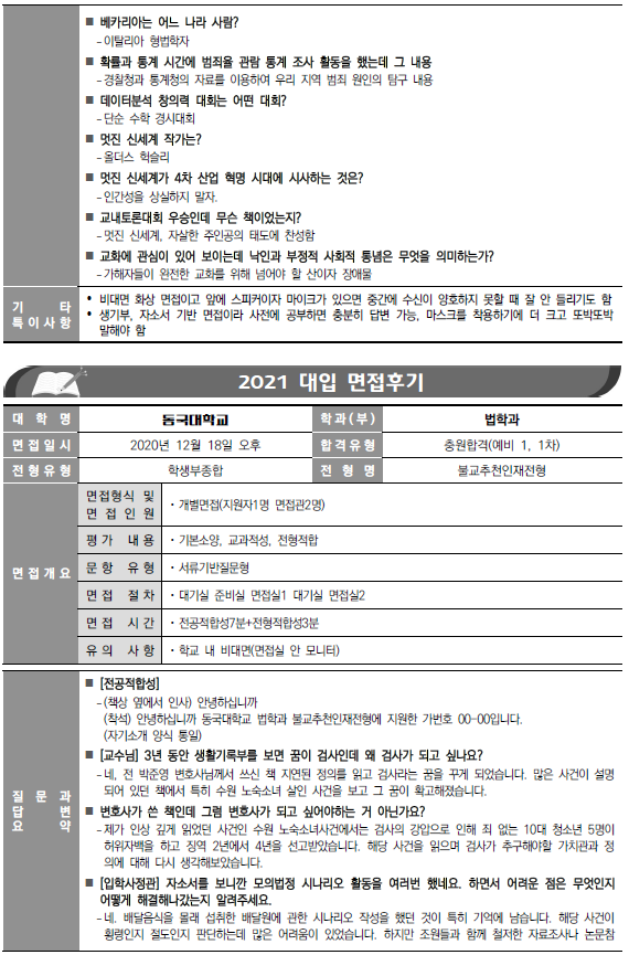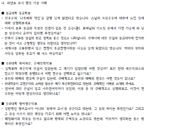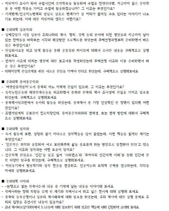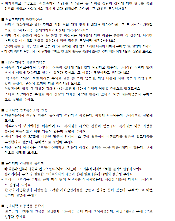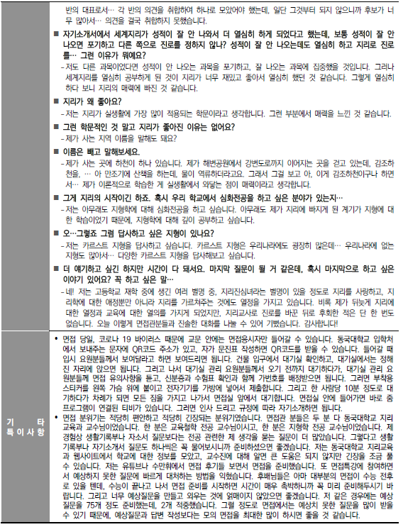 ※ 면접 기출문항은 각 대학 입학처 홈페이지 또는 각 시도교육청 면접자료 참조