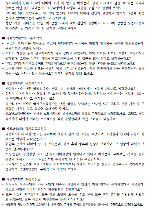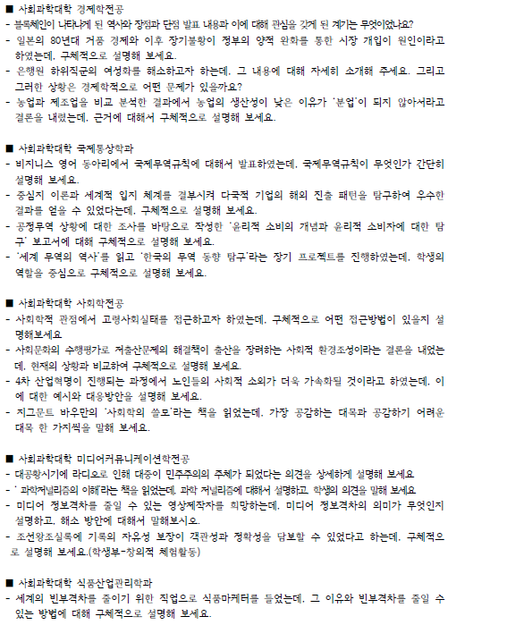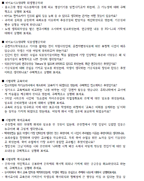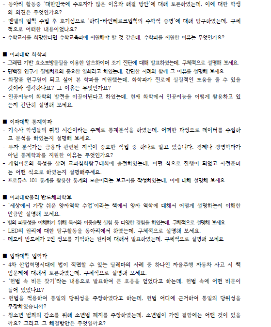 | 2022학년도 수시 면접 대비 전년도 기출문제 -③ 고려대, (0) | 2021.09.28 |