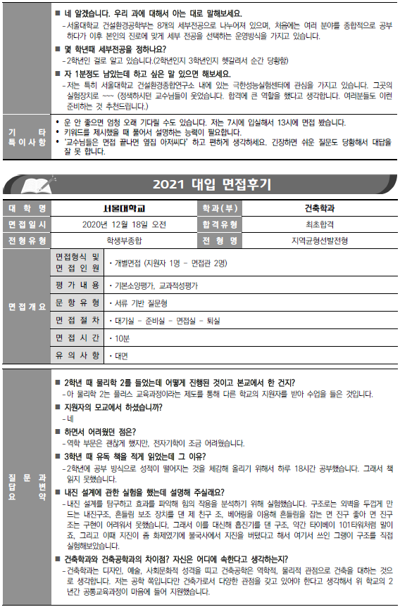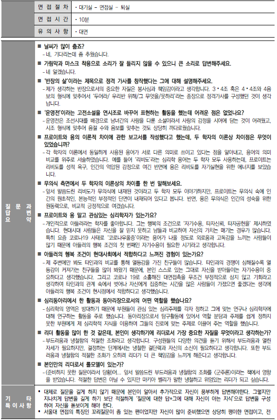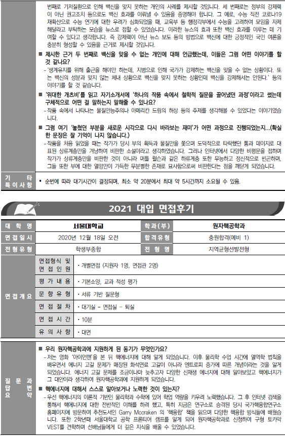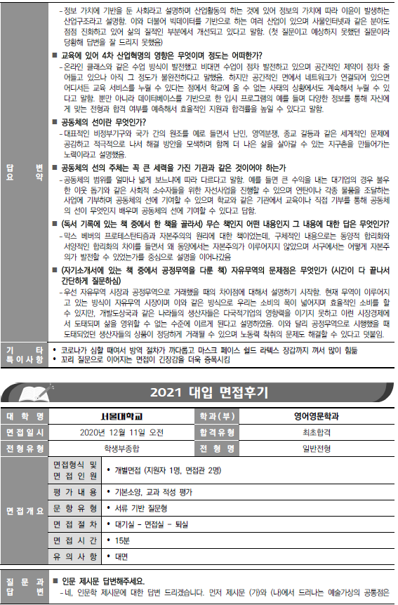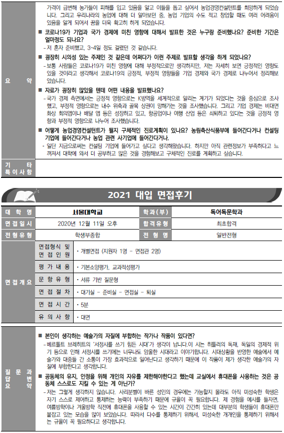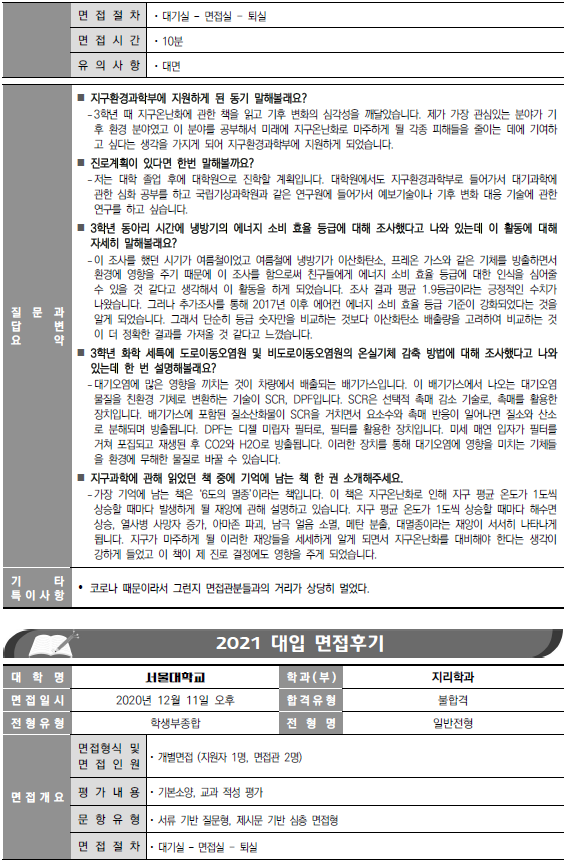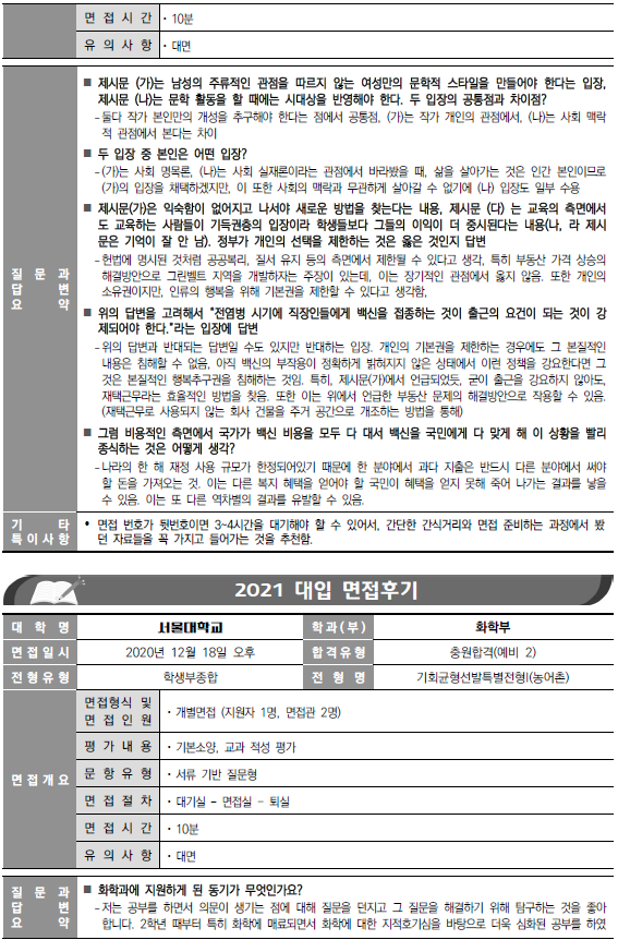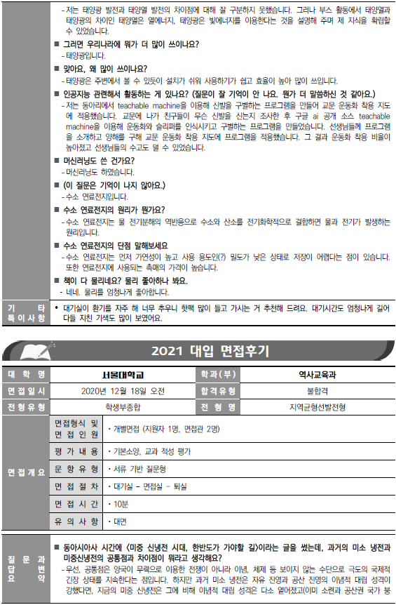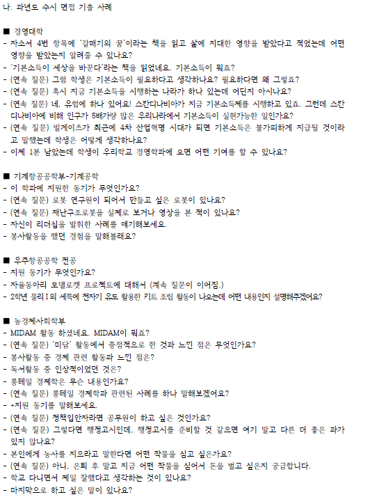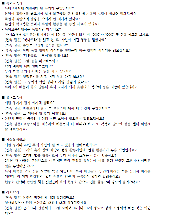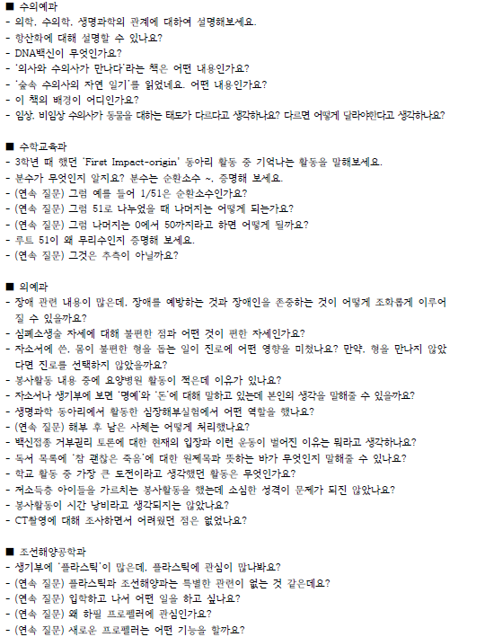※ 면접 기출문항은 각 대학 입학처 홈페이지 또는 각 시도교육청 면접자료 참조