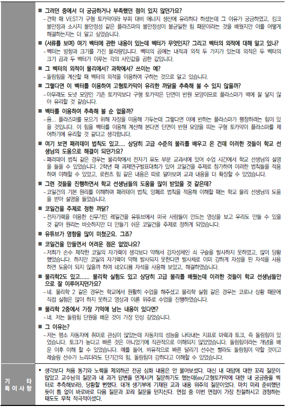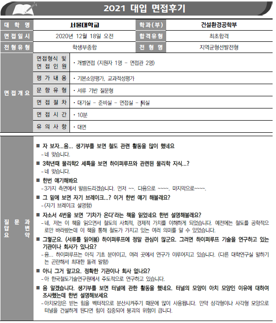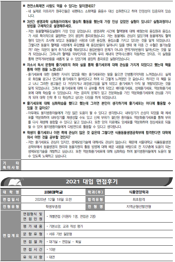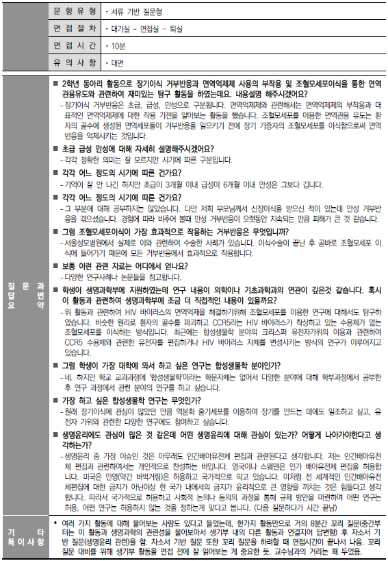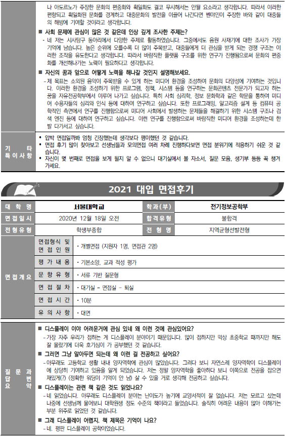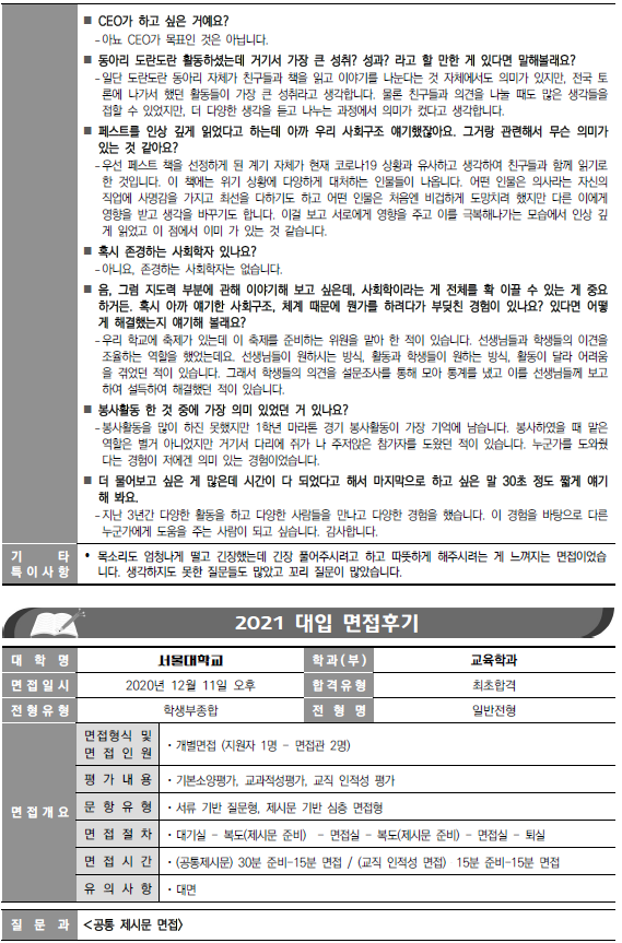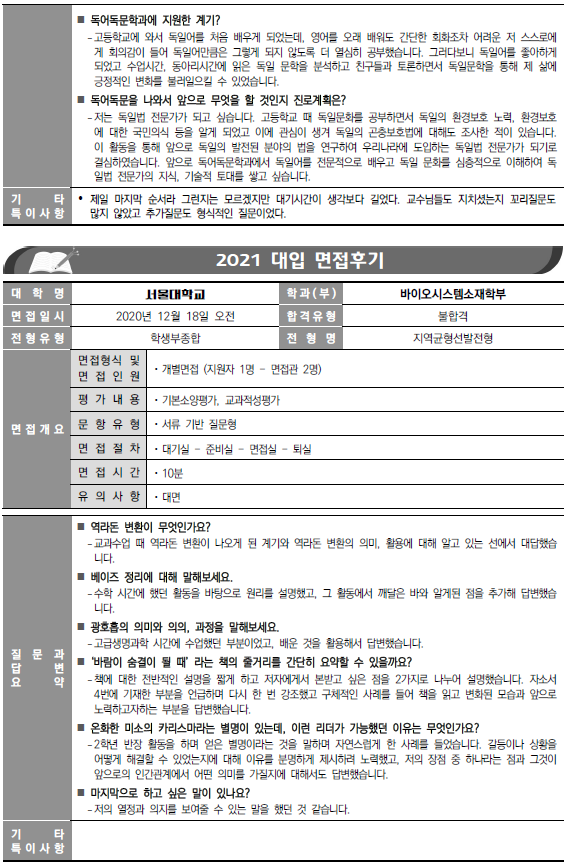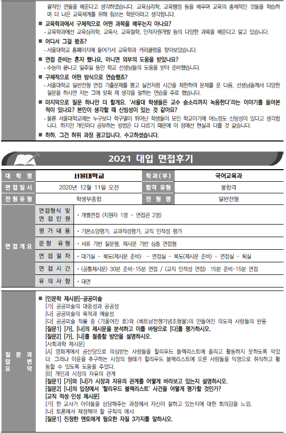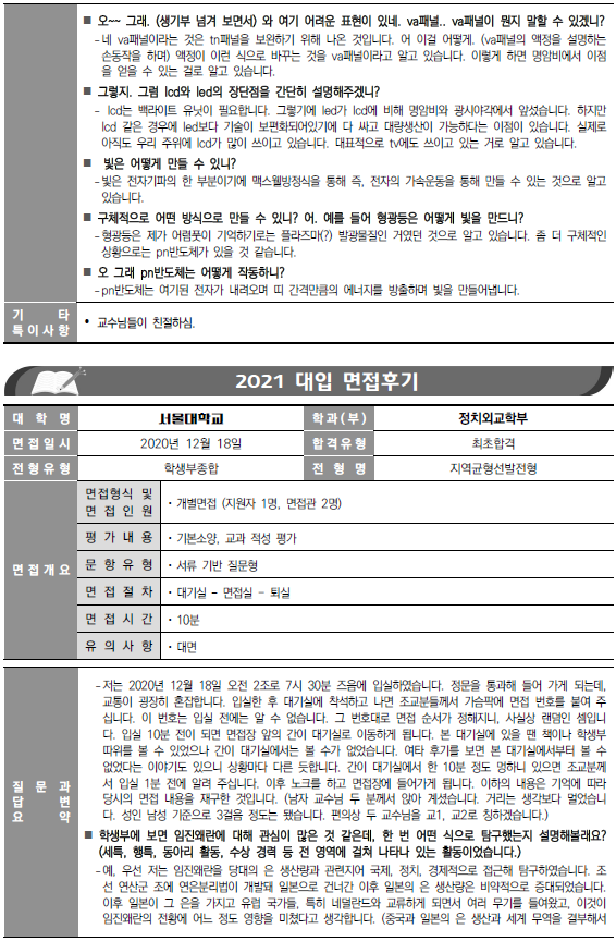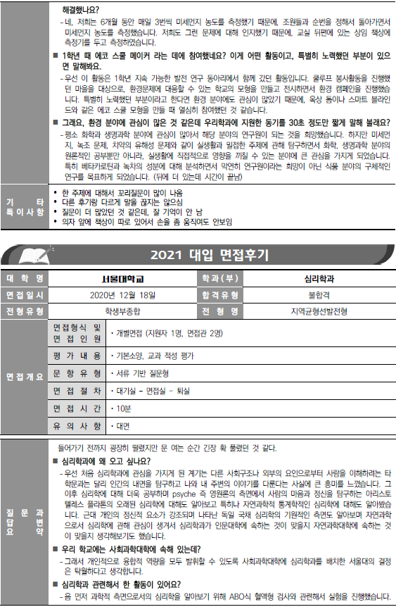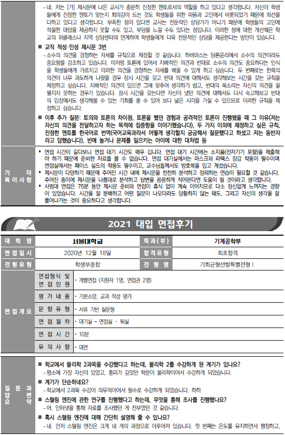 ※ 면접 기출문항은 각 대학 입학처 홈페이지 또는 각 시도교육청 면접자료 참조