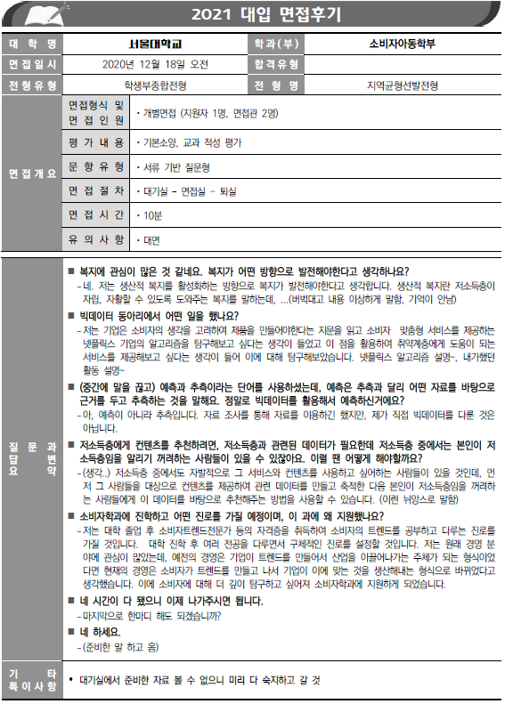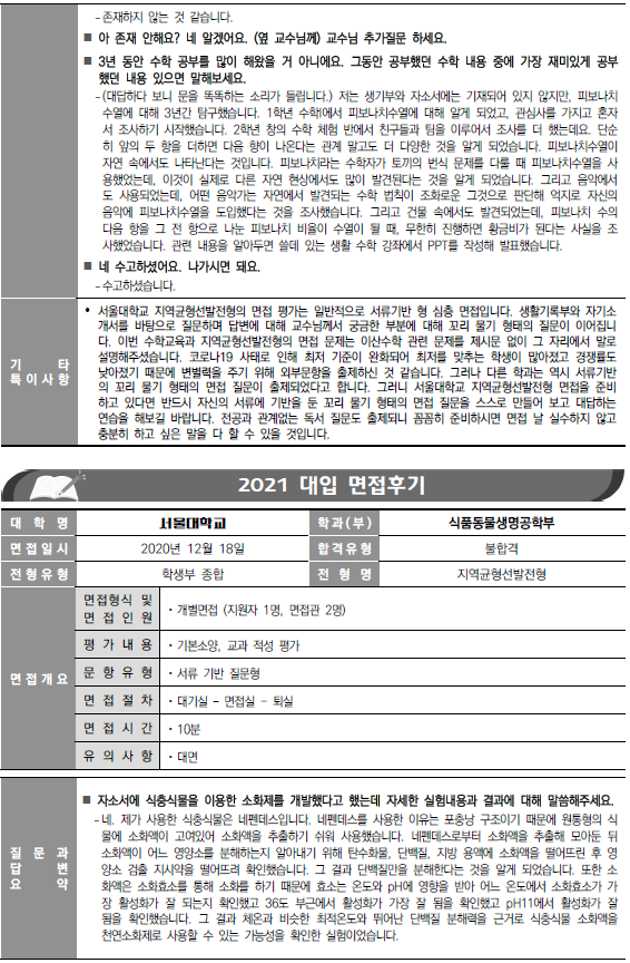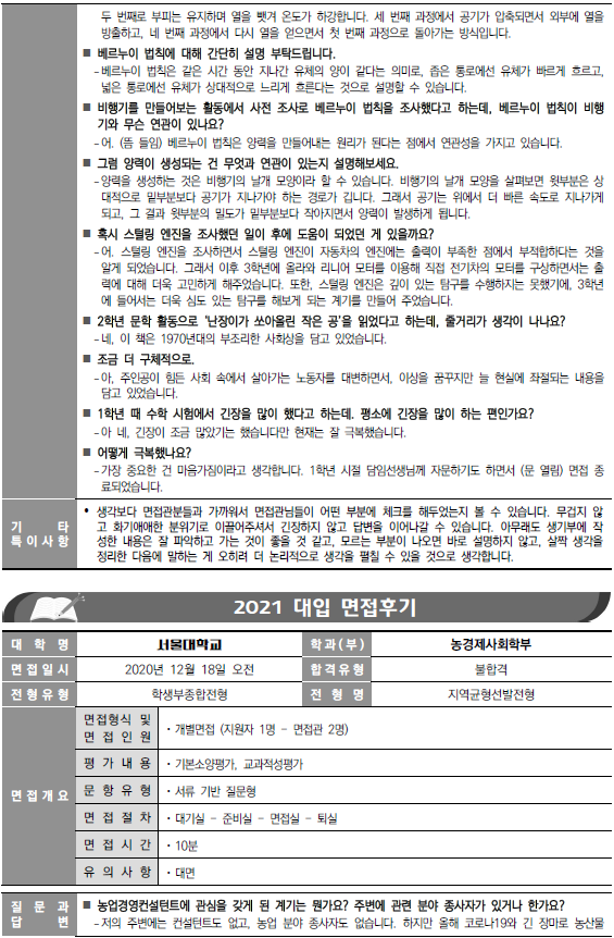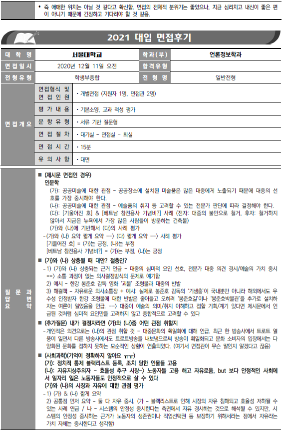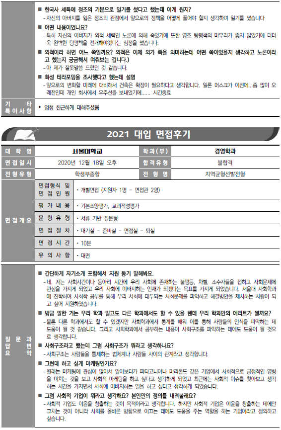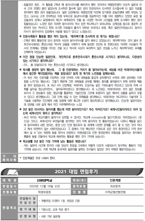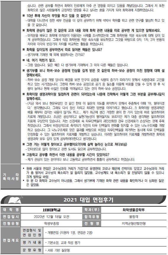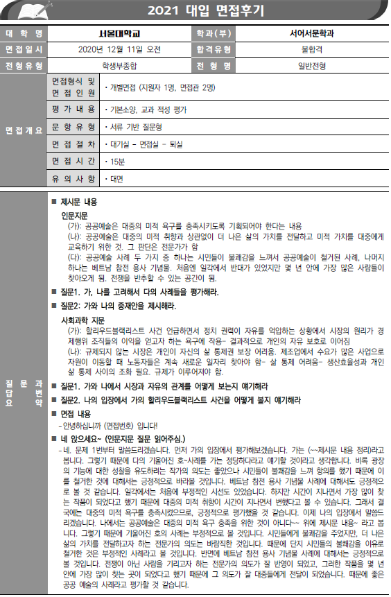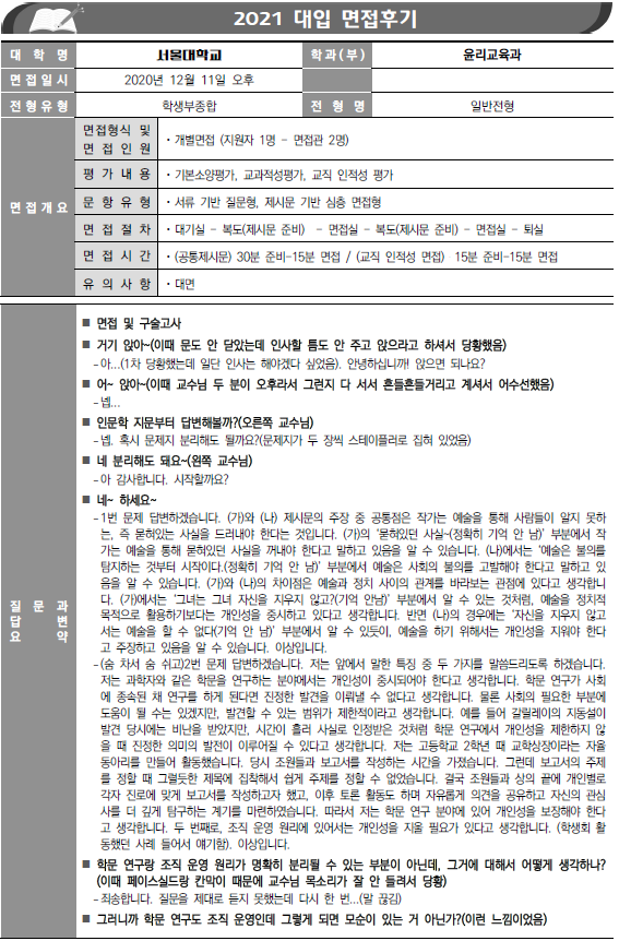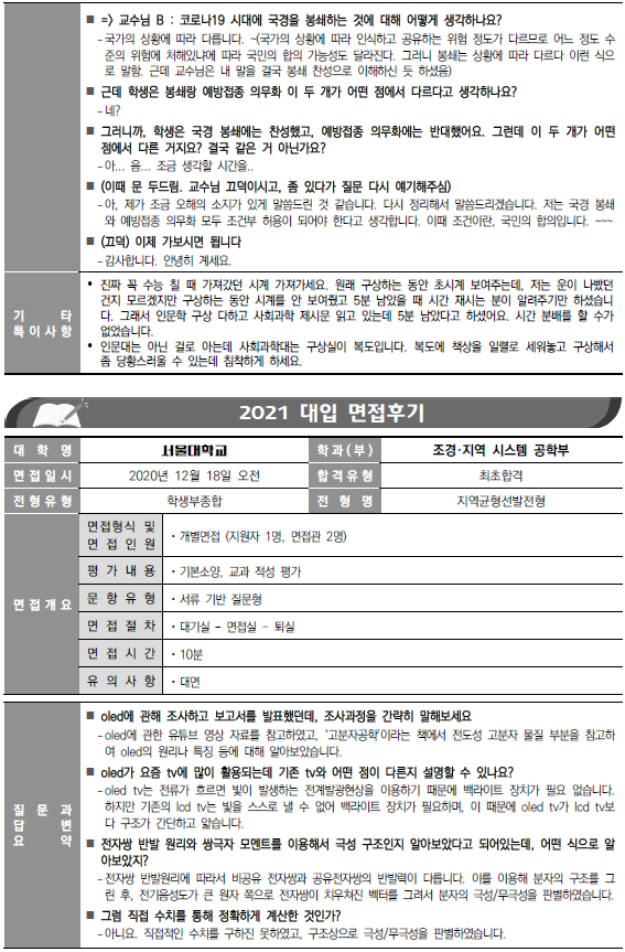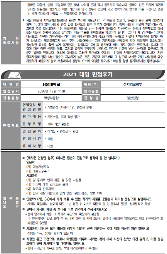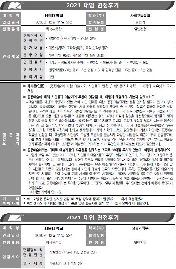 | 2022학년도 수시 면접 대비 전년도 기출문제 -③ 서울시립대, (0) | 2021.10.11 |