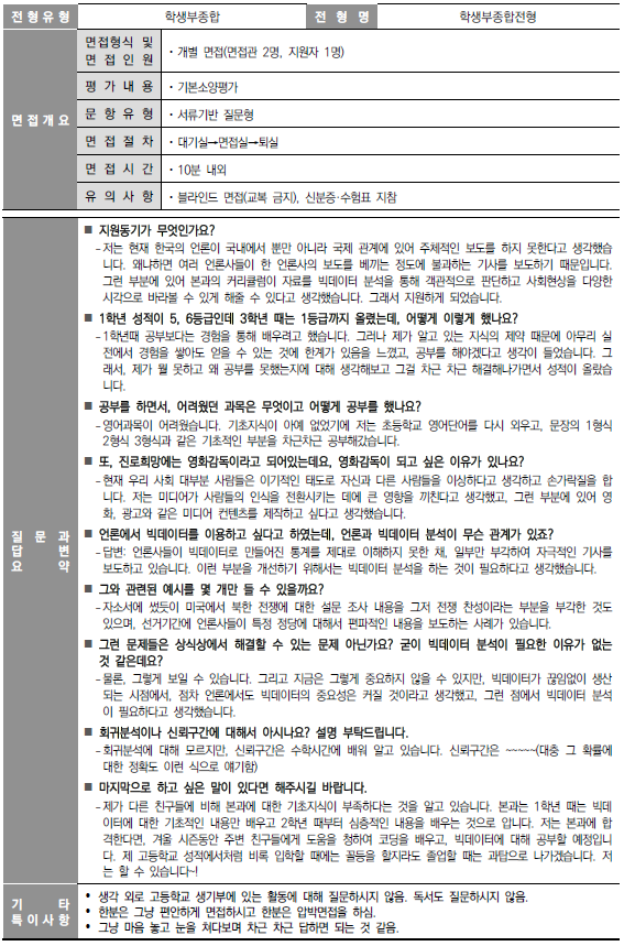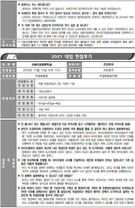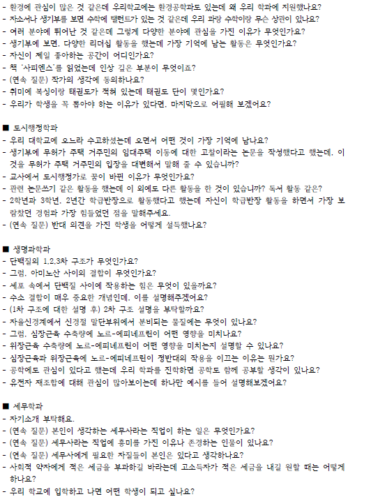 ※ 면접 기출문항은 각 대학 입학처 홈페이지 또는 각 시도교육청 면접자료 참조
