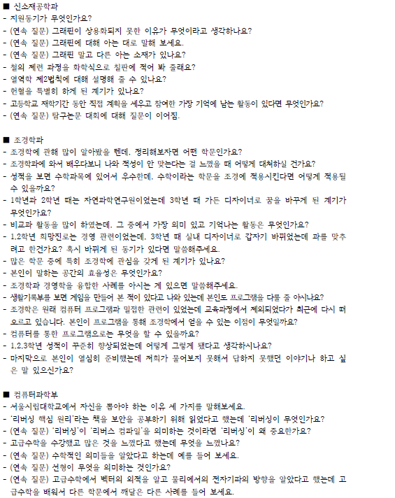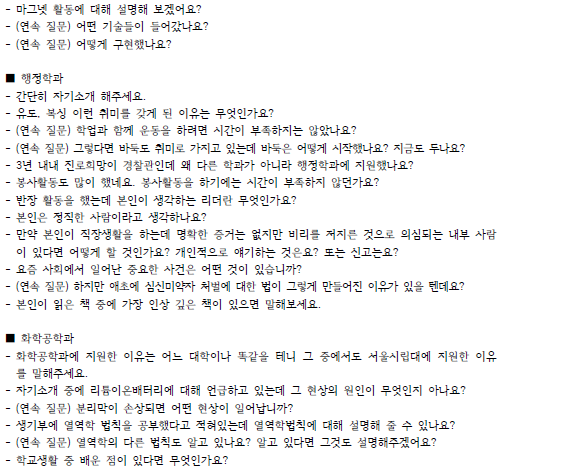| 2022학년도 수시 면접 대비 전년도 기출문제 -③ 서울대 (0) | 2021.10.11 |