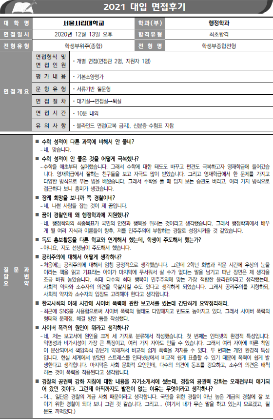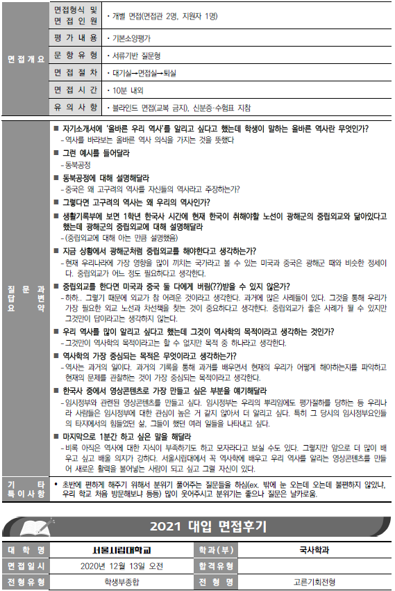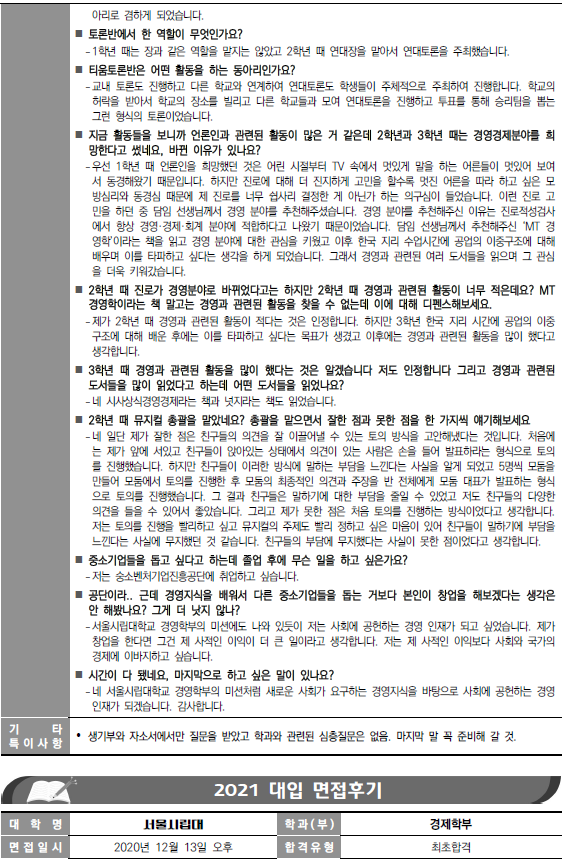 | 2022학년도 수시 모의면접 - 연세대, 서강대 (0) | 2021.10.12 |