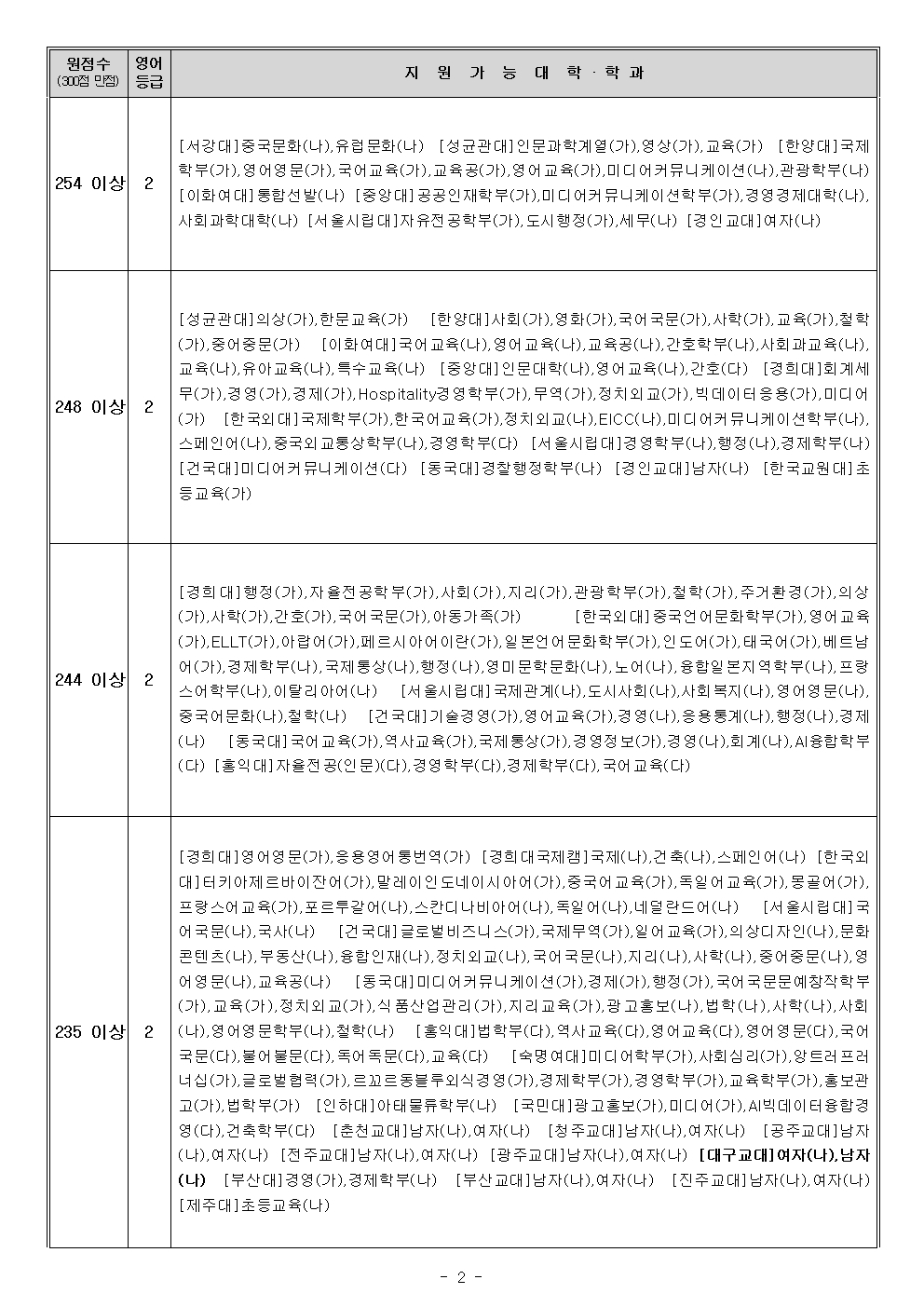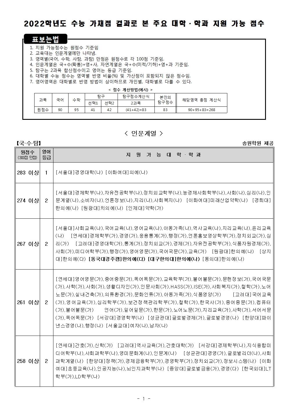| 2022학년도 정시 지원 가능 대학 참고표(가채점) - 자연계 (0) | 2021.11.22 |