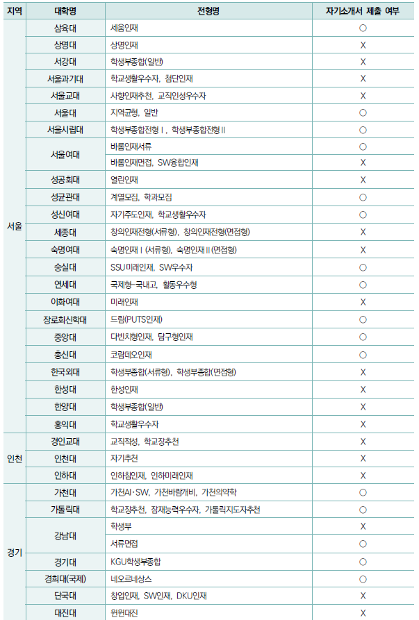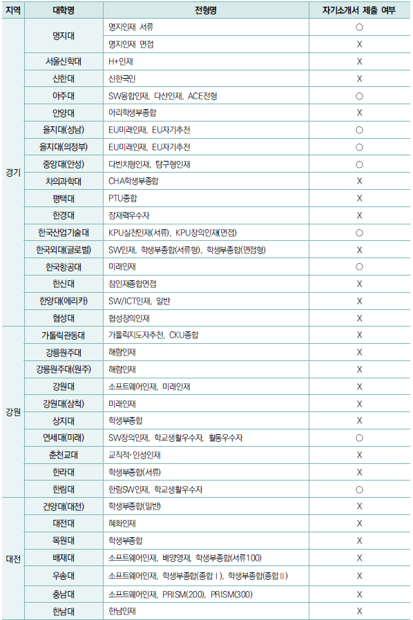□ 자기소개서 제출 여부