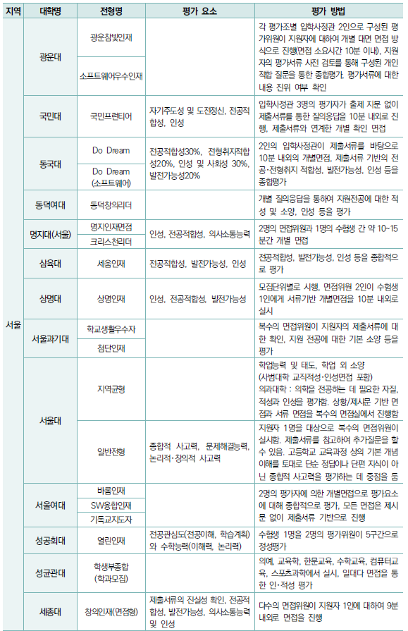 - 과목별 세부능력 및 특기사항(세특)은 큰 비중을 차지.