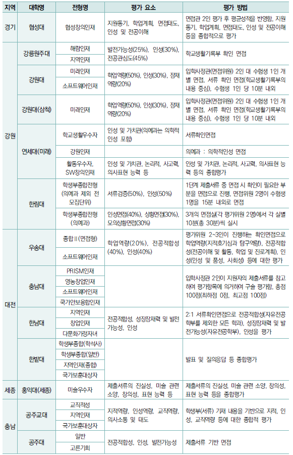 - 학생부종합전형은 학생부를 중심으로 자기소개서, 면접 등을 통해 평가하는 전형.