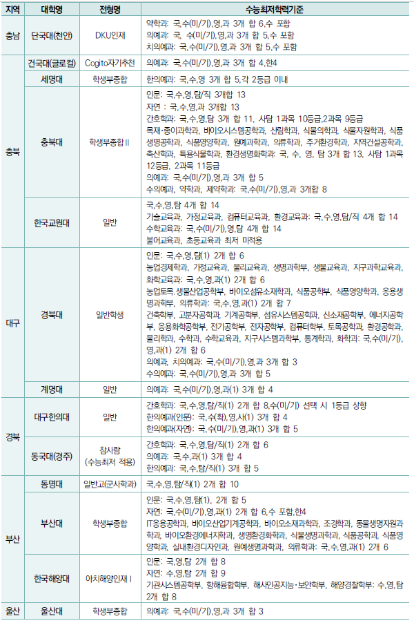 | 2023학년도 수시 학생부교과전형 - 반영교과, 반영비율, 수능 최저 (0) | 2021.12.02 |