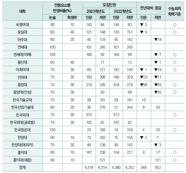 | 2023학년도 학생부종합전형 - 전형방법, 수능최저, 자기소개서, 면접 (0) | 2021.12.02 |