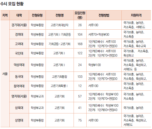 □ 고른기회 통합 특별전형 - 수시/ 정시