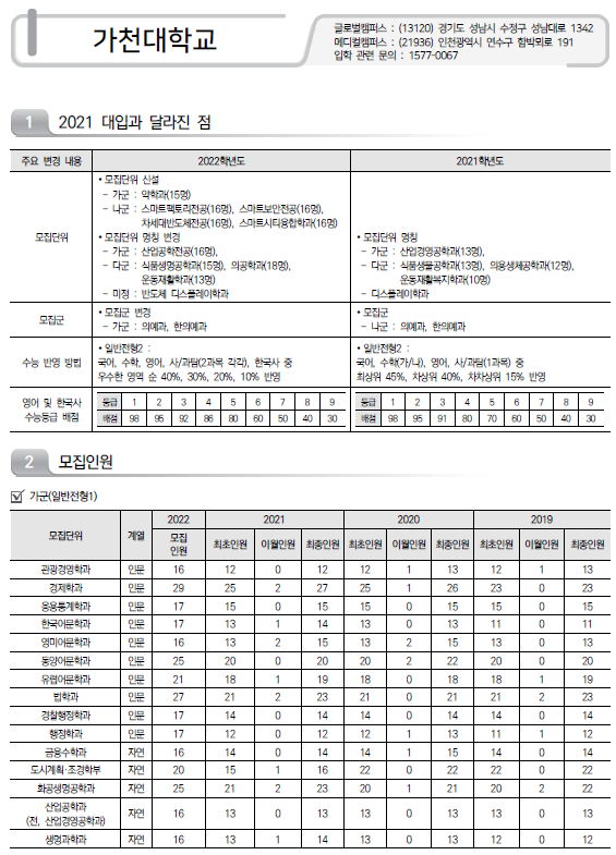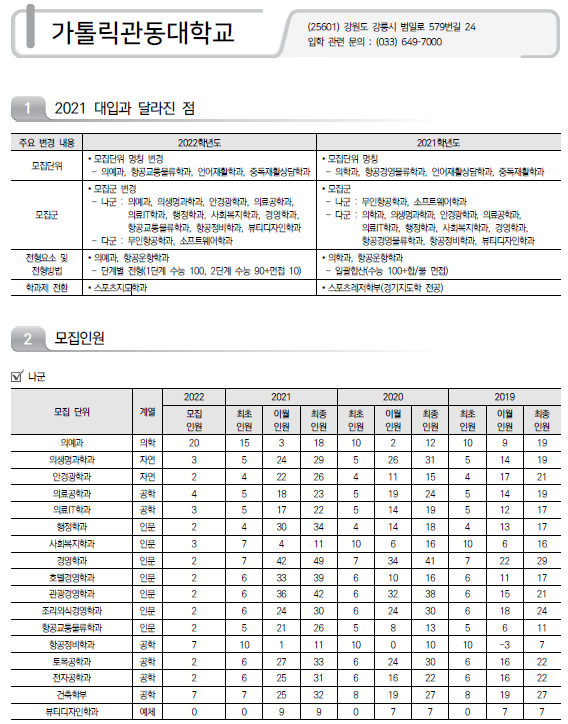 | 2022학년도 강남대학교/ 강릉원주대학교/ 강원대학교(춘천) 정시 모집 요강 및 전년도 정시 커트라인 (0) | 2021.12.13 |