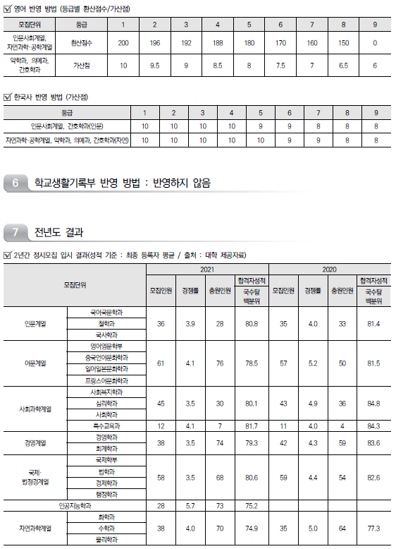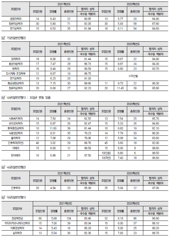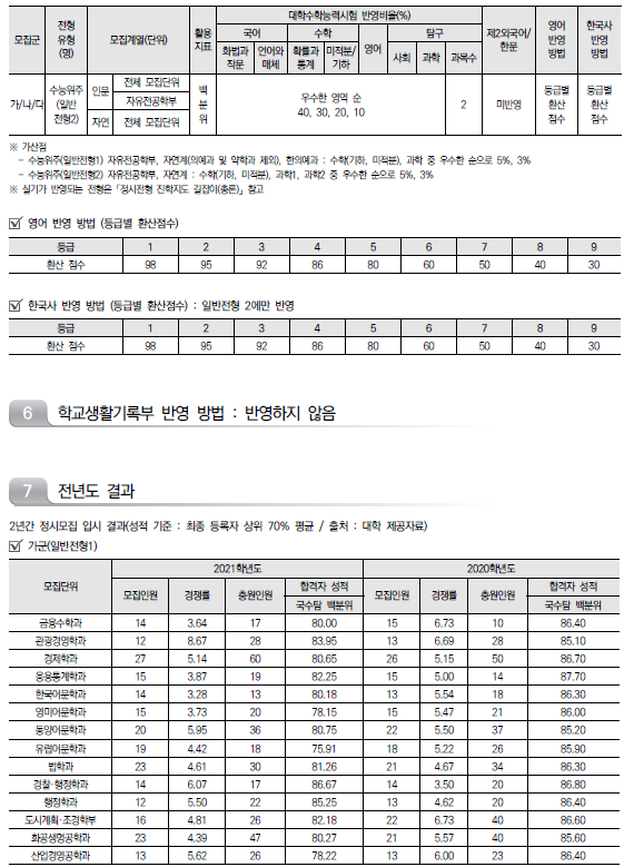 | 경희대학교 2022학년도 수시전형 방법, 모집요강 및 전년도 수시 입시결과(수시등급) (0) | 2021.08.10 |