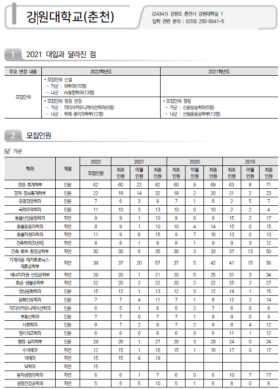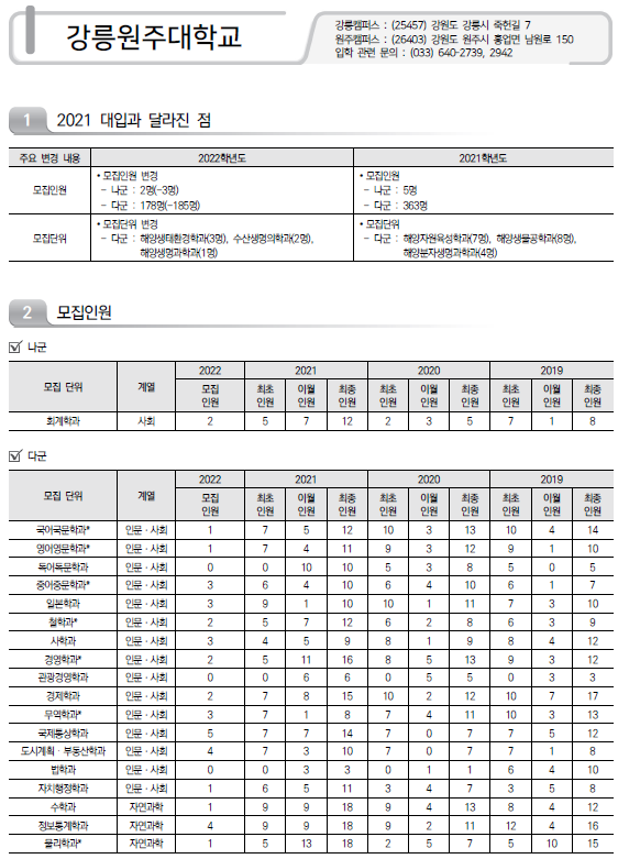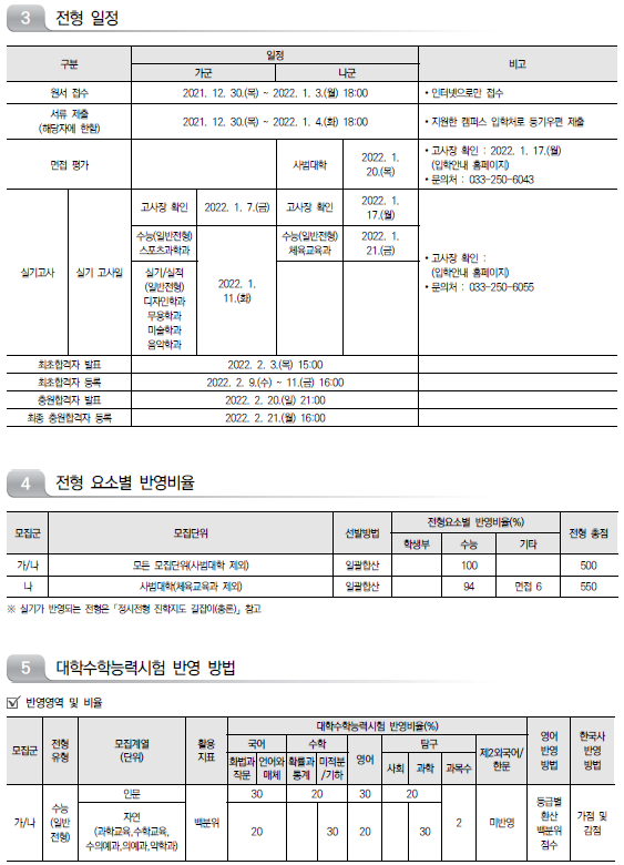 | 2022학년도 가천대학교/ 가톨릭관동대학교/ 가톨릭대학교 정시 모집 요강 및 전년도 정시 커트라인 (0) | 2021.12.13 |