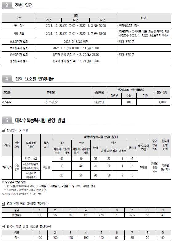 | 경희대학교 2022학년도 수시전형 방법, 모집요강 및 전년도 수시 입시결과(수시등급) (0) | 2021.08.10 |
