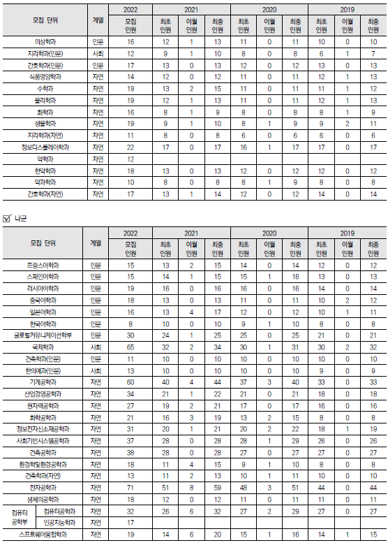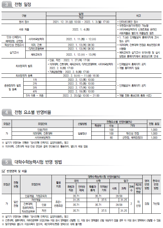 | 2022학년도 경기대학교/ 경북대학교/ 경상국립대학교 정시 모집요강 및 전년도 정시 커트라인 (0) | 2021.12.13 |